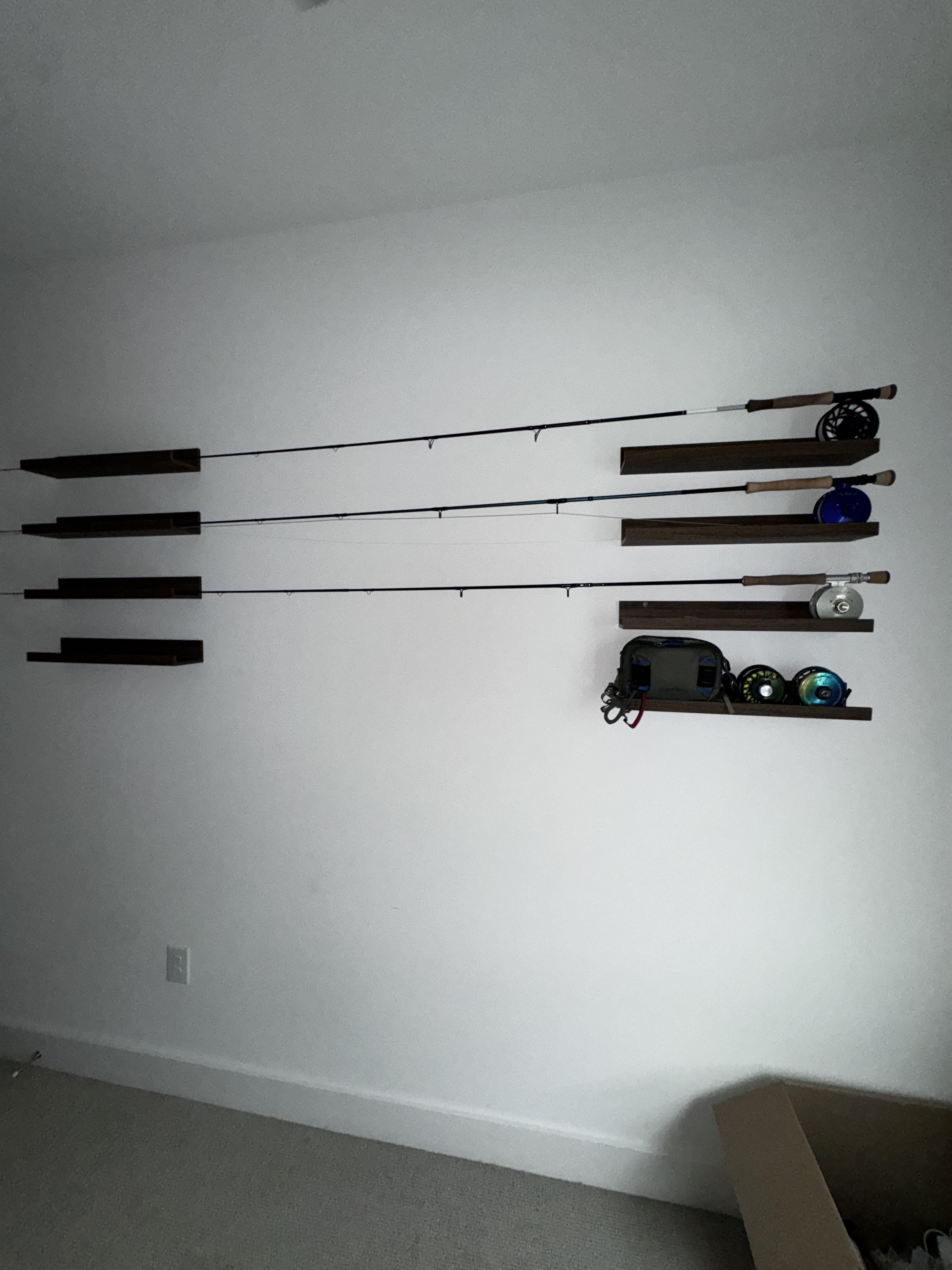 Bought these shelves at ikea and did a DIY rod storage wall, got a couple 8wts, 2 9s with a third otw, and space enough for 2 12wts which will round out my saltwater quiver. The shelves were 10 a piece so very inexpensive as well.