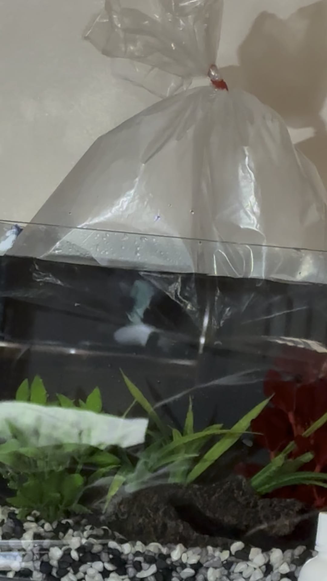 I just purchased this little dude so I had him getting used to the new tank water temperature. Call me crazy but it looks like he’s playing with his own shadow? (If this is something else pls lmk)