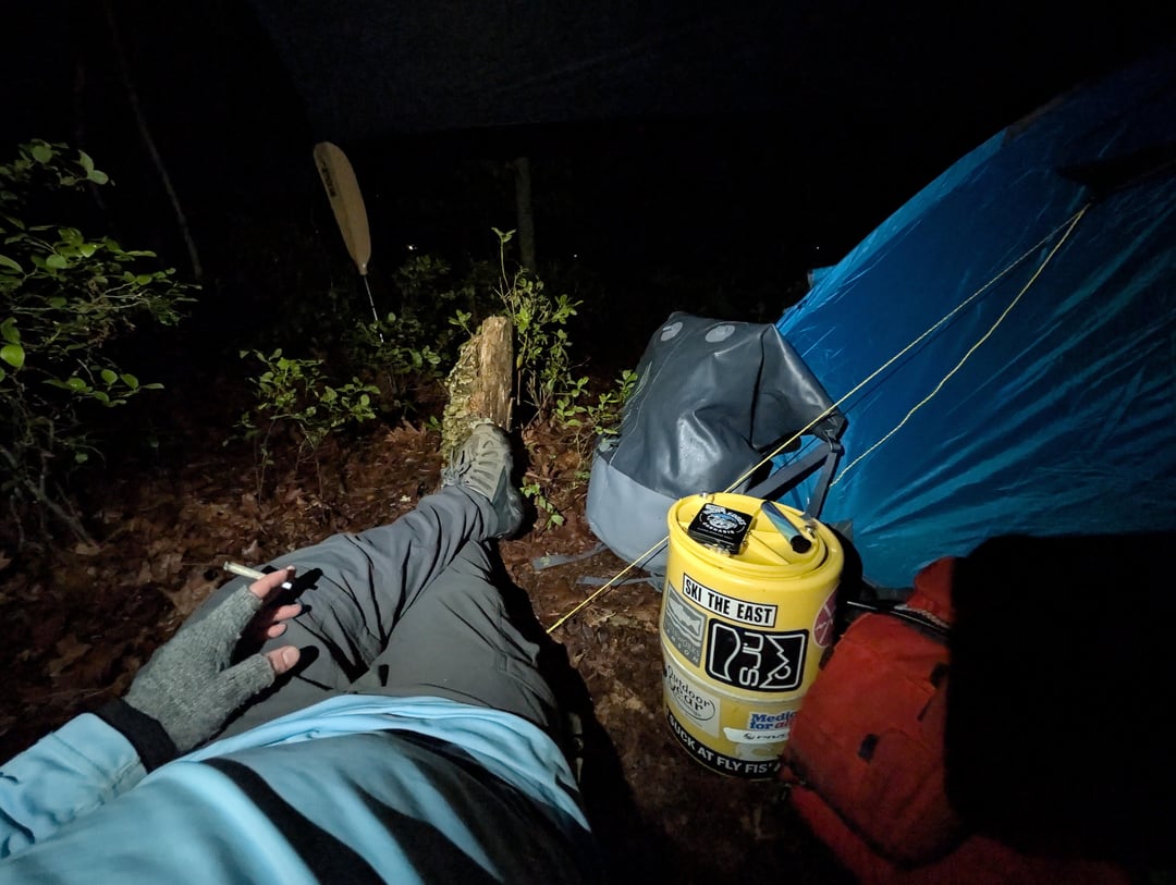 I spent the weekend island camping and and fishing in miserable conditions, with rain and strong winds the entire time. It was a bit of a misadventure, where I dropped a rod in the water and went swimming to go get it (which I did), broke a rod, and my kayak seat failed. Still, I had a great time and caught a few.