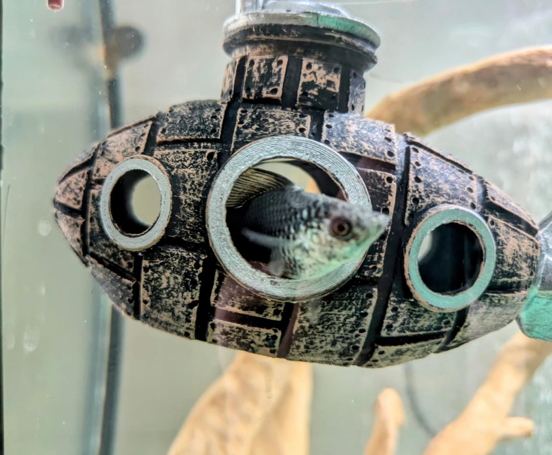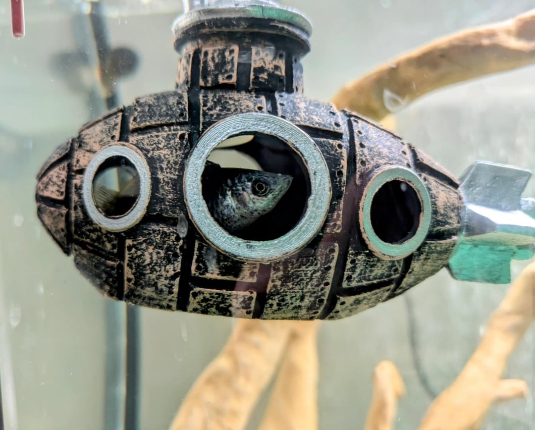 Purchased a floating submarine for the guppies, and this fat a** moved in and won’t let them explore it, hahaa Posted by Icy_Application_1592