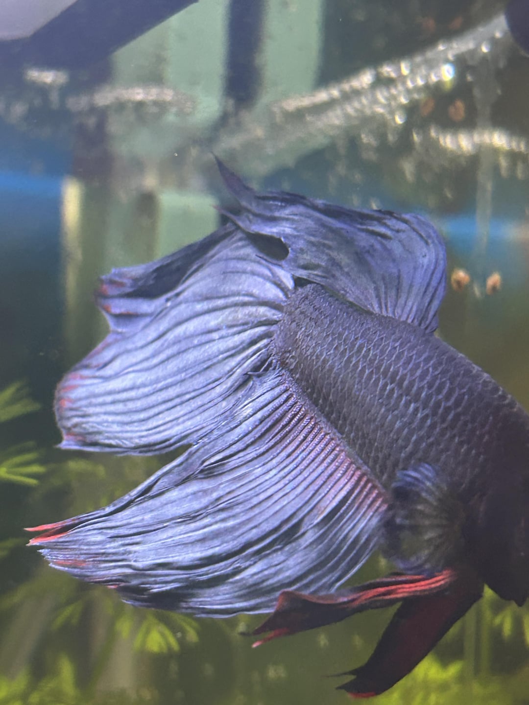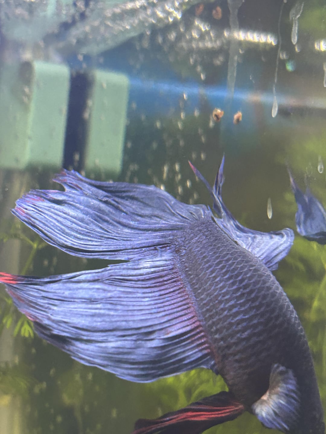 i see all these betas fins looking glossy and silky, his look very ugly compared to them, he was flaring in this but when he’s not they are very clumped together instead of being shown off