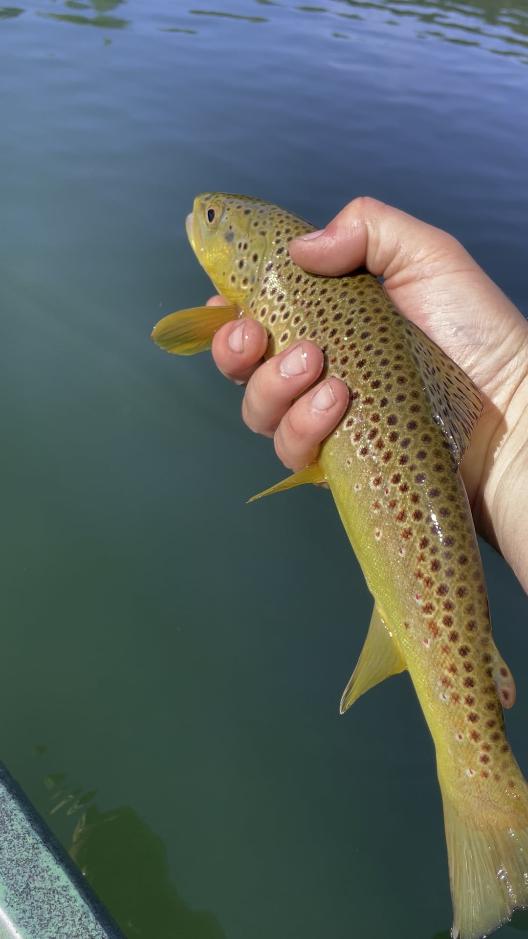 Caught on a size 16 white bomber midge.