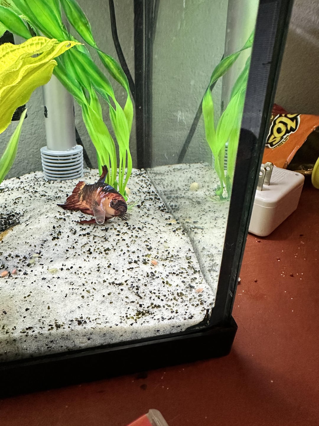 Hi my boys have had this betta for a little over a year now. They named him Spicy Tuna. He’s always been incredibly active and a voracious eater. I’ve recently noticed that he’s swimming less and eating less and seems destined on his right side just behind his gills. I’m working down the list of possibilities and am worried it’s a tumor of some sort. The tank is clean, no changes in diet. He normally rests on the bottom on the tank now which is very abnormal for him. I know there’s several possibilities, and I’m not sure how to go about treating him, if it’s possible. Any insight would be greatly appreciated. I fasted him over the weekend and that seems to have made no difference.