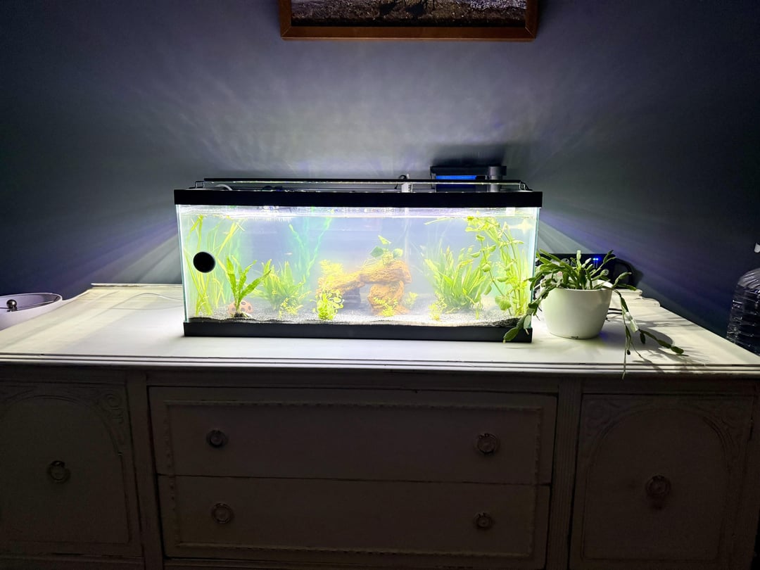 The water is cloudy due to just changing up the substrate but I had to get a photo exactly one year apart ! Posted by Mini_Myles29