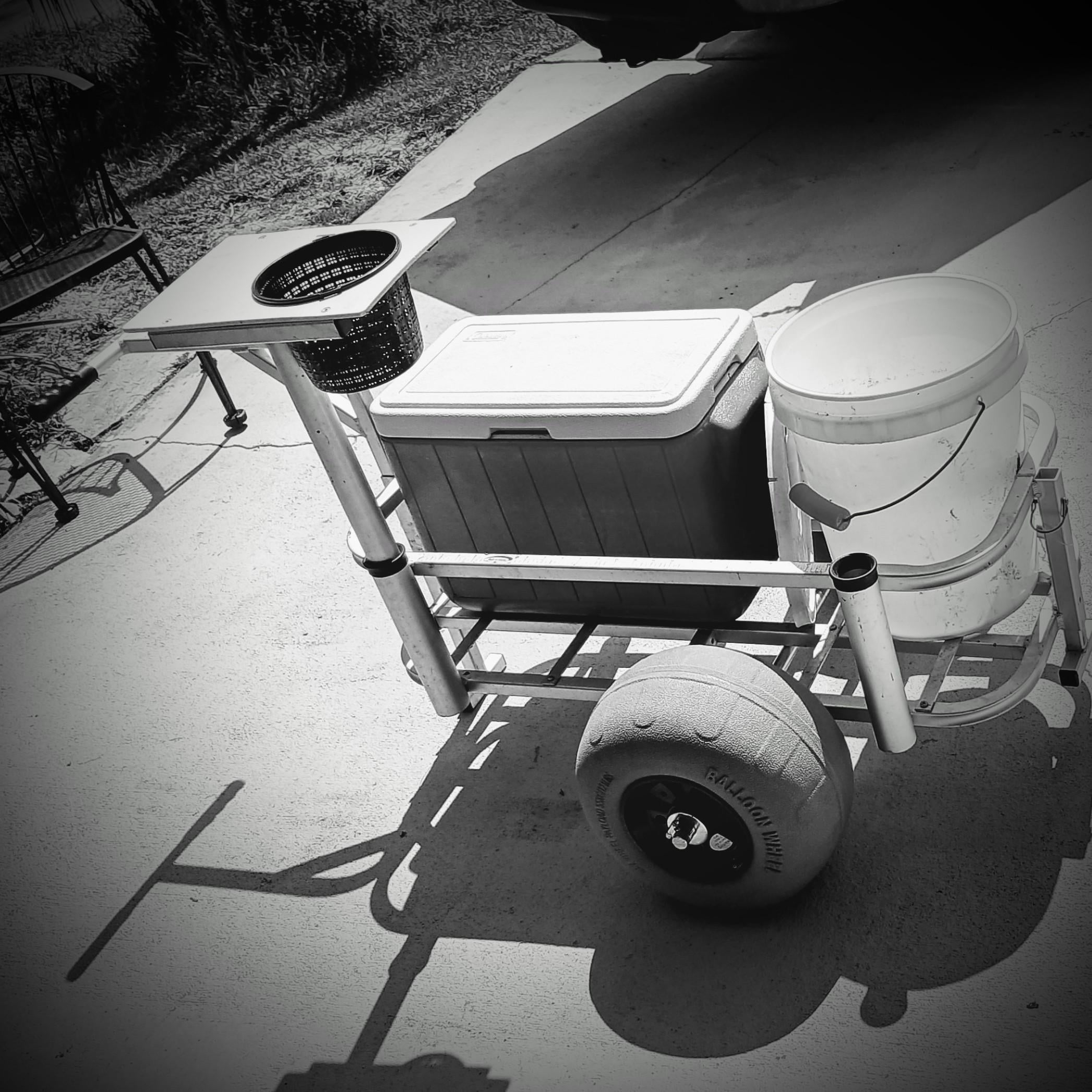 Got this little aluminum cart, added the balloon wheels. Looking for your tips and tricks or any little upgrades. Like maybe a cup holder, weight rack, any extra stuff on the rails.