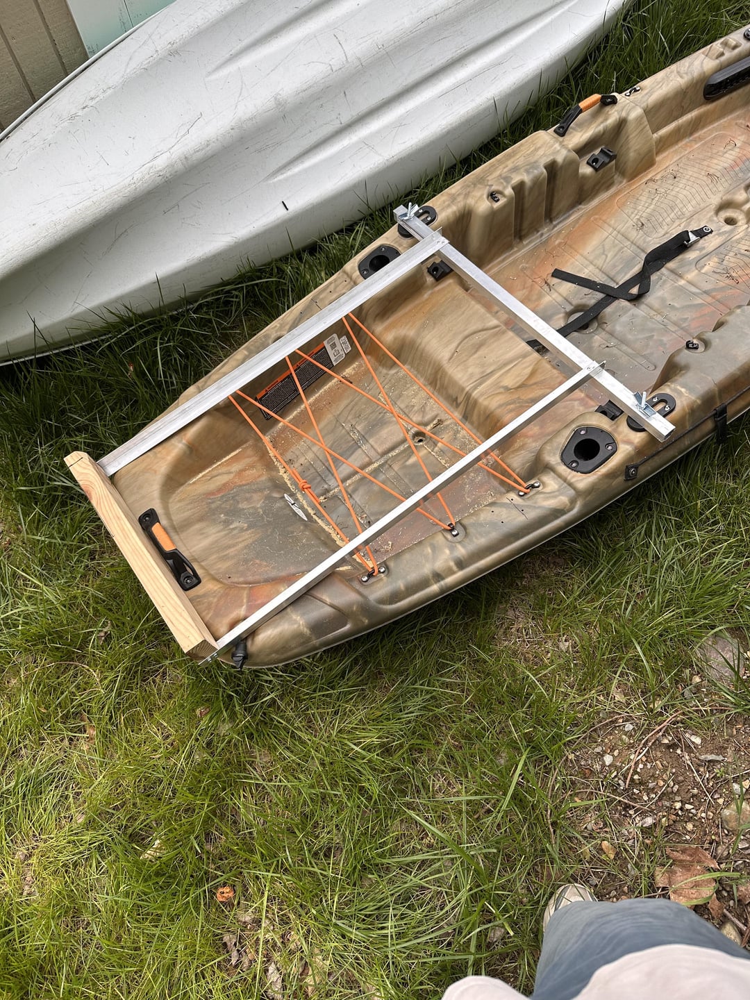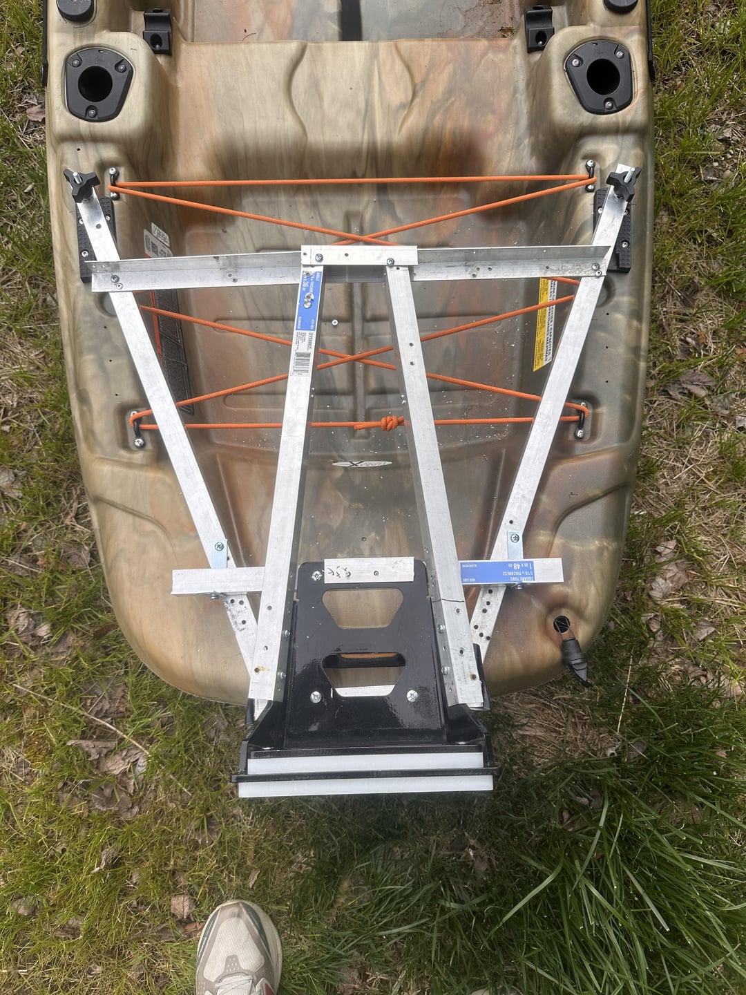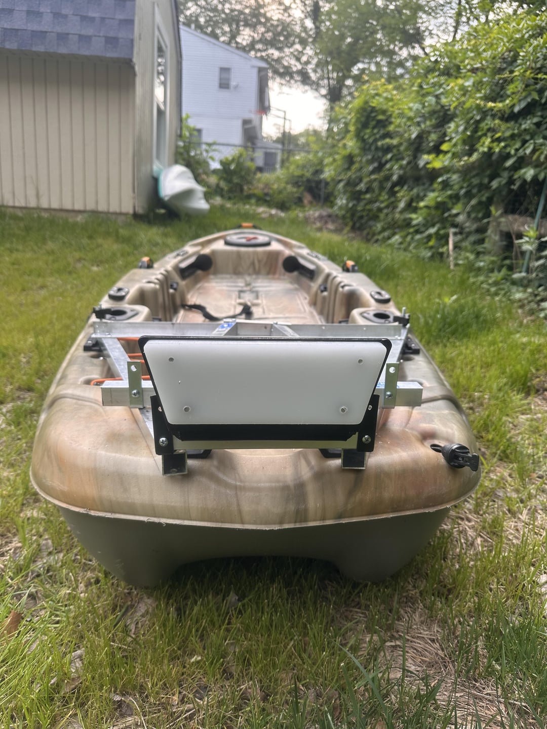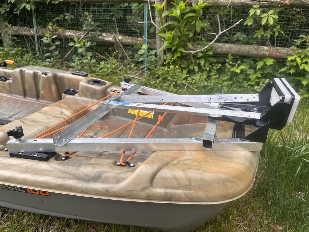 Update: I posted a mount I made for pelican catch 100 a couple weeks ago and was given solid feedback. First pic is the original frame I made with some aluminum and a 2×4. It probably would have gotten the job done but it needed a little more stability. I ended up buying a legit transom mount off amazon for like 50 bucks but unfortunately it didn’t fit so I made a new frame out of the aluminum. It may look a bit sloppy in some spots but it’s sturdy. Instead of using rivets I used self driving steel screws for the aluminum angles (Game changer) If anyone has advice or suggestions please feel free. My next project will be a pulley to lift the motor out of the water and eventually a steering system instead of the extended tiller handle I have now.