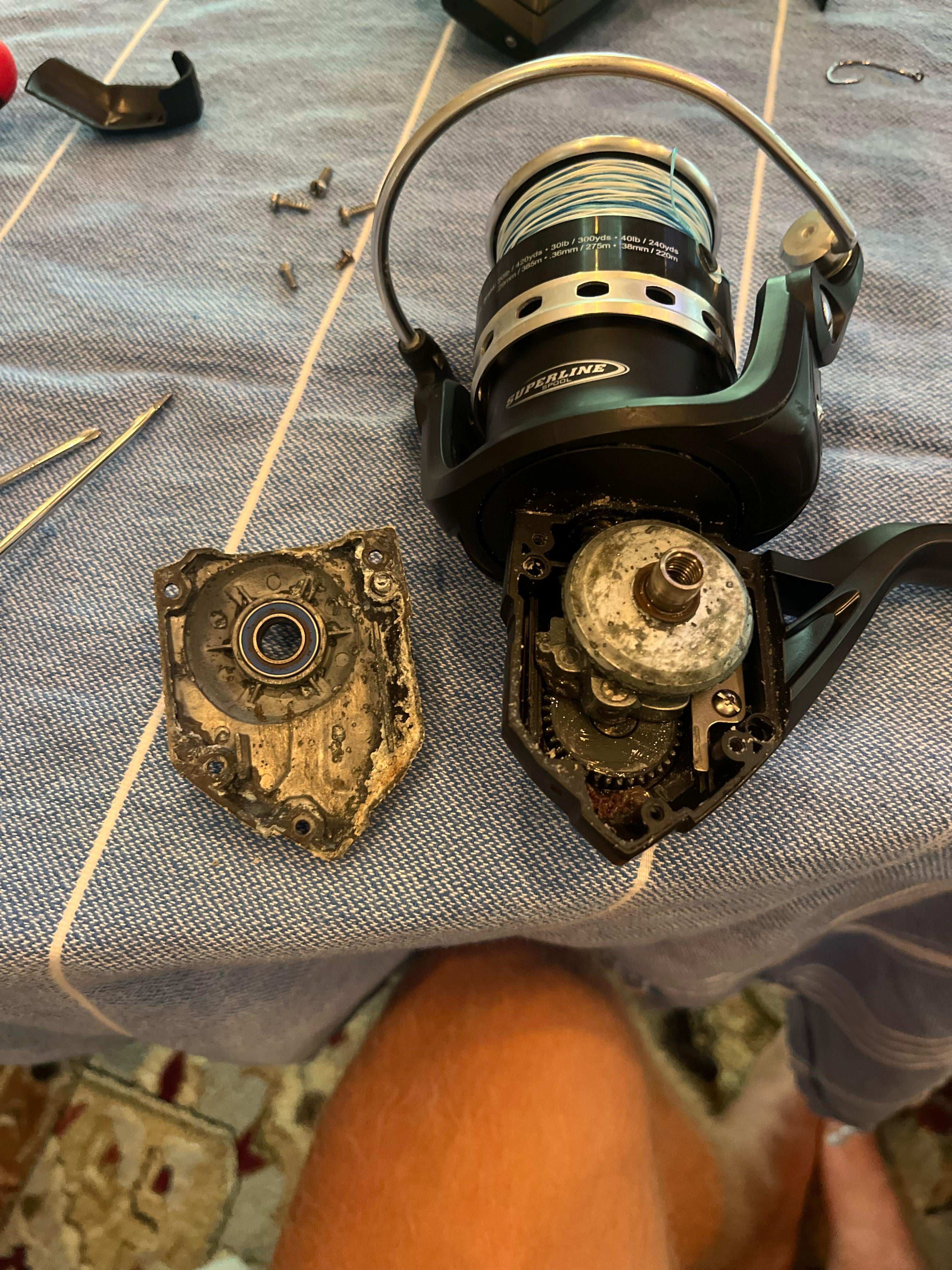 Penn Pursuit IV 5000, first reel I ever bought about 5 years ago when I first started. Haven’t maintained it til now. What do I need to do? Corrosion doesn’t look too bad and used it recently and it was able to handle small sharks/anything else I pulled up.