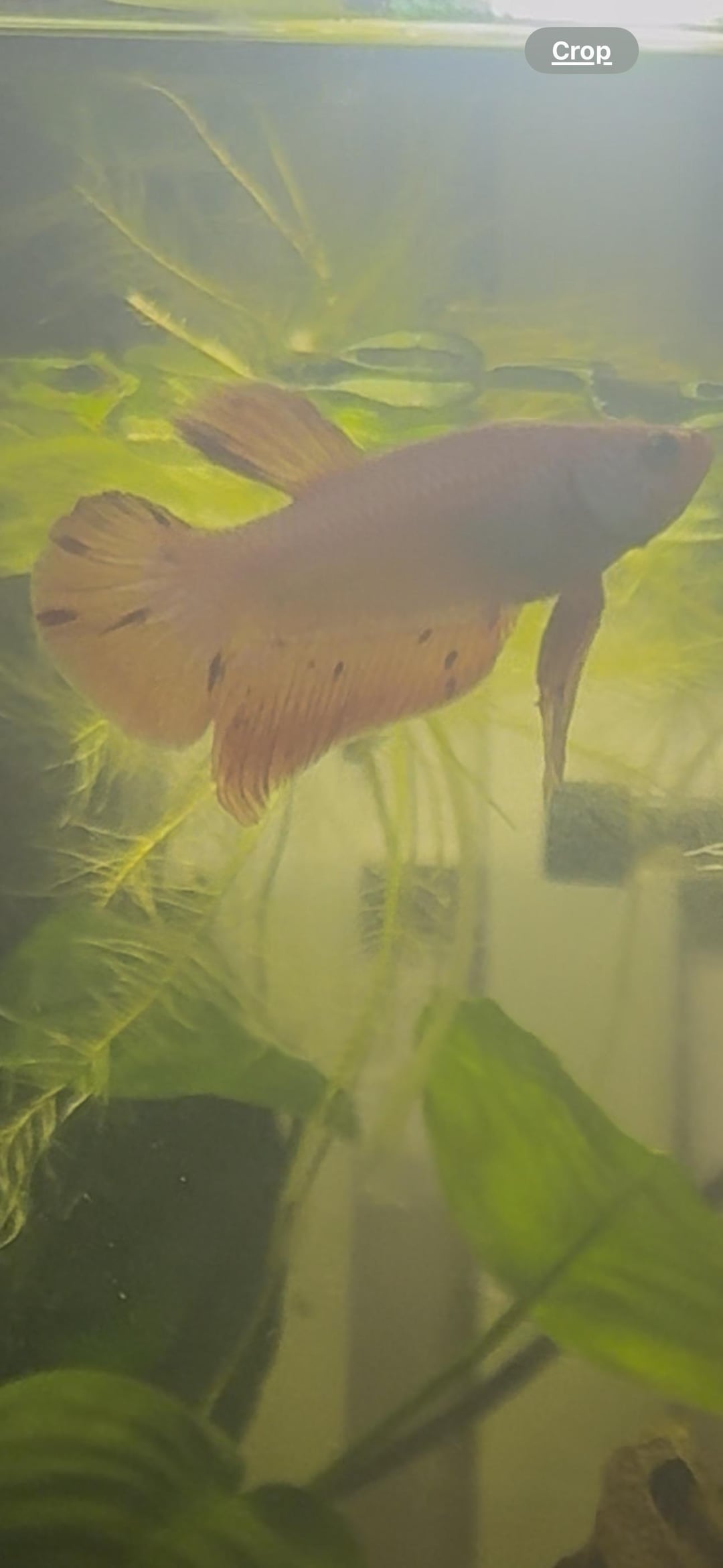 That’s a male! Males can have false egg spots. In the picture where the light is shining through him, I do not see ovaries, just the regular organs.