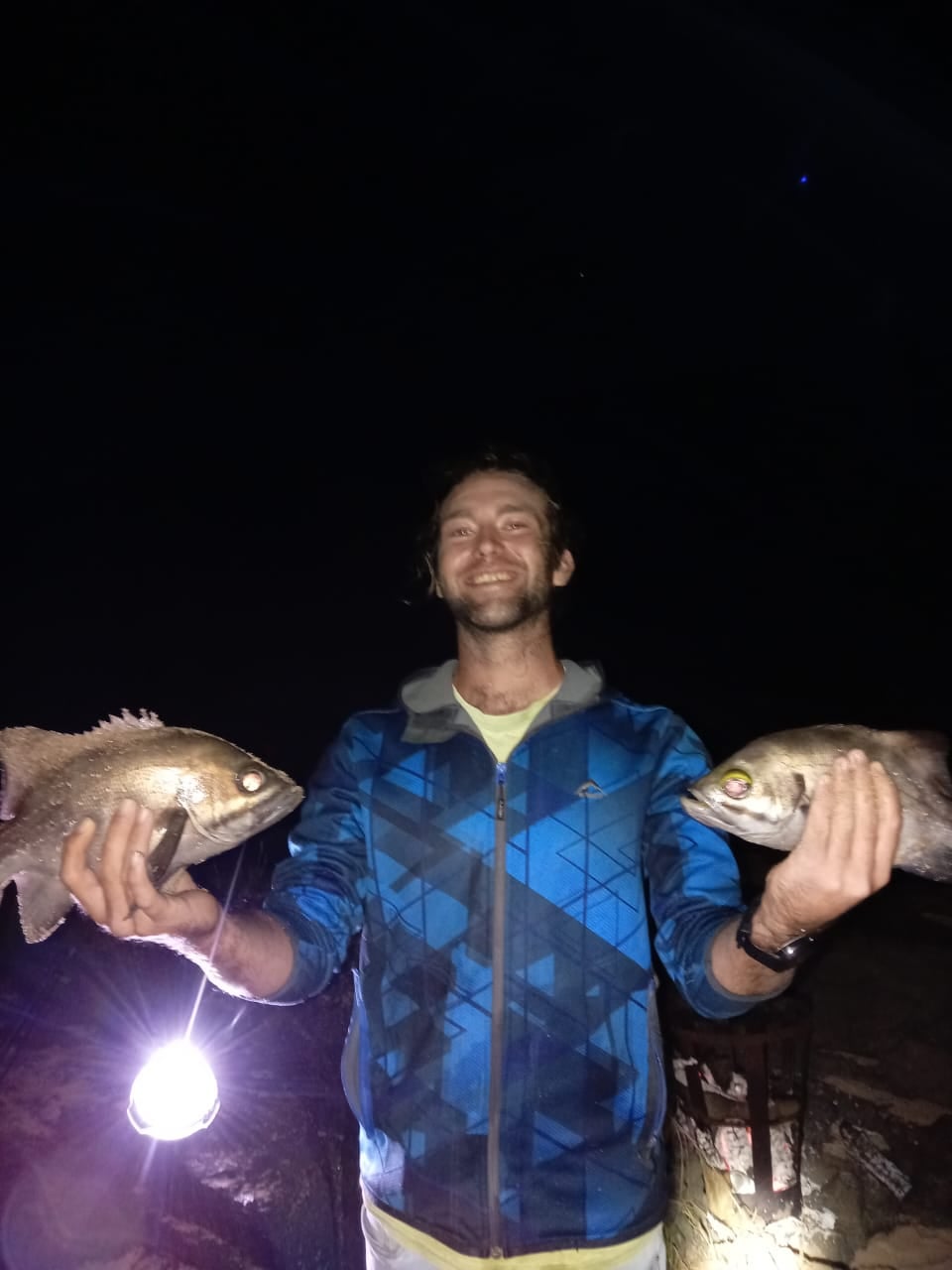 Fishing North Coast, Kwazulu-Natal, South Africa. I think they are young Natal Knifejaws, aka cuckoo bass, Bastard Galjoen. But really not sure. Had very tasty, white flesh. Also caught a sea barbel (catfish) let him back in.