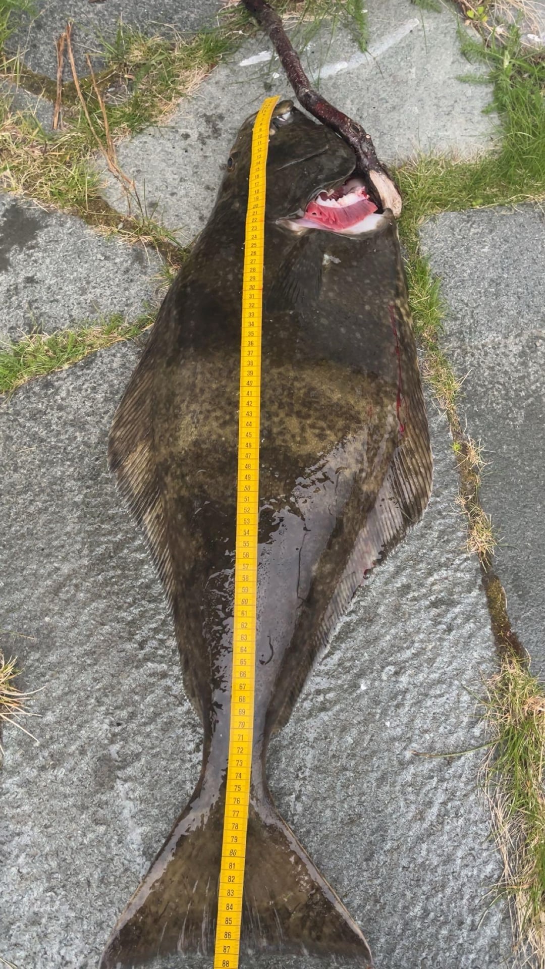 Slow day of fishing. No bites for 6 hours. Just about to pack up when this halibut took the bait. They always put up a good fight😁.