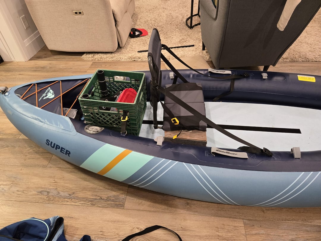 Hey all first time caller long time listener. Avid fisherman but lack the capacity to own a hard kayak or other fishing vessel and got this inflatable last year at Costco and had the idea to add some modifications to make it a better fishing kayak. Armed with a sewing machine, 3d printer and fusion 360 I aim to make something quick and simple to assemble and deploy yet fully removable so the family can also use it as a recreational kayak.