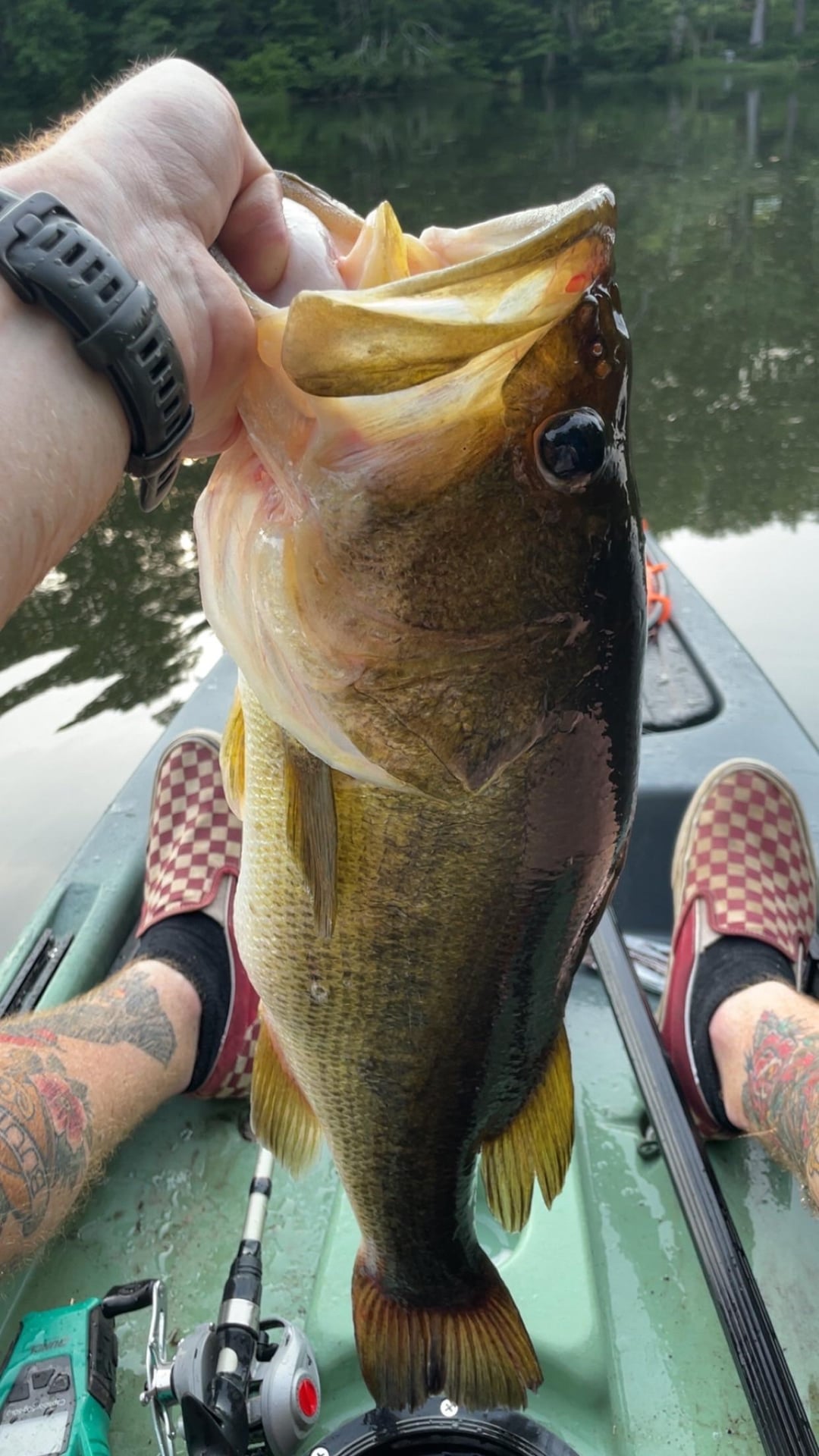 Before this biggest bass I’ve caught was like 3 1/2 lbs. Bonus pics of a few others I caught yesterday. Around 7pm I decided to swap from the ole faithful pink trick work to some top water. 3rd cast with this lure and she blew up on it! Drenched me like a took a shower, it was awesome!