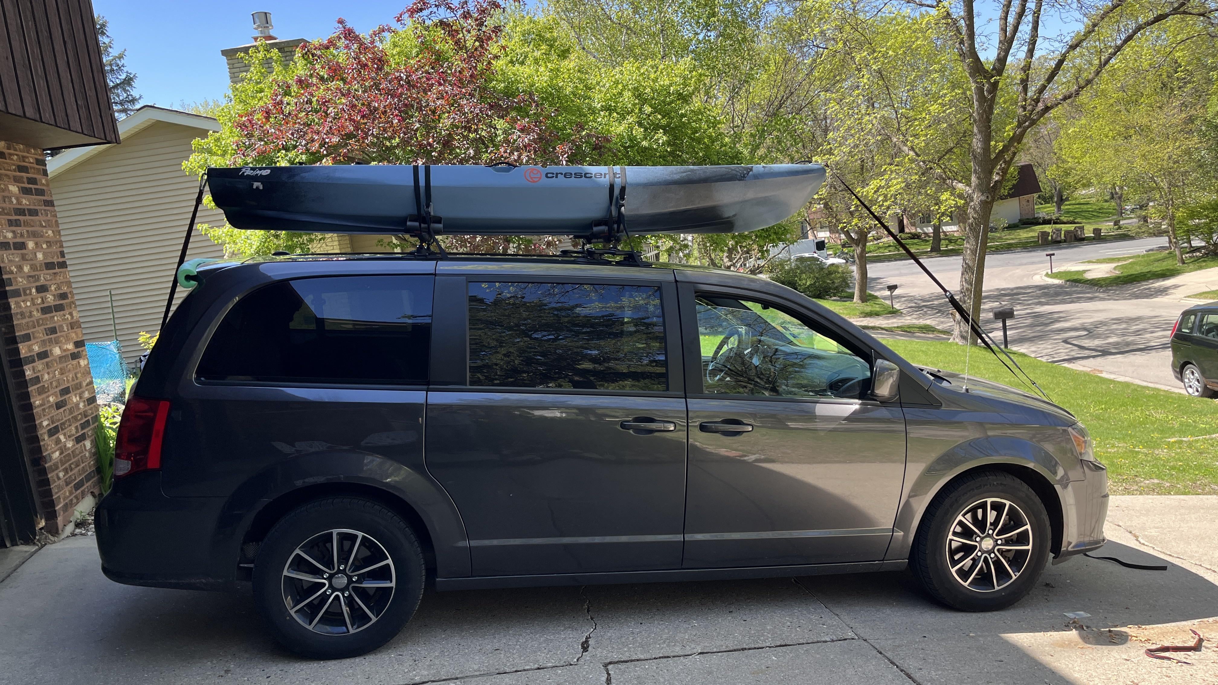 Have been car topping my Crescent Primo for months on Yakima Evenkeel saddles as pictured. Crescent recommends that their kayaks be transported upside down, resting on the gunwales. Despite that, I liked the saddles because they made it easier (in my opinion) to slide the kayak on and off solo from the rear.