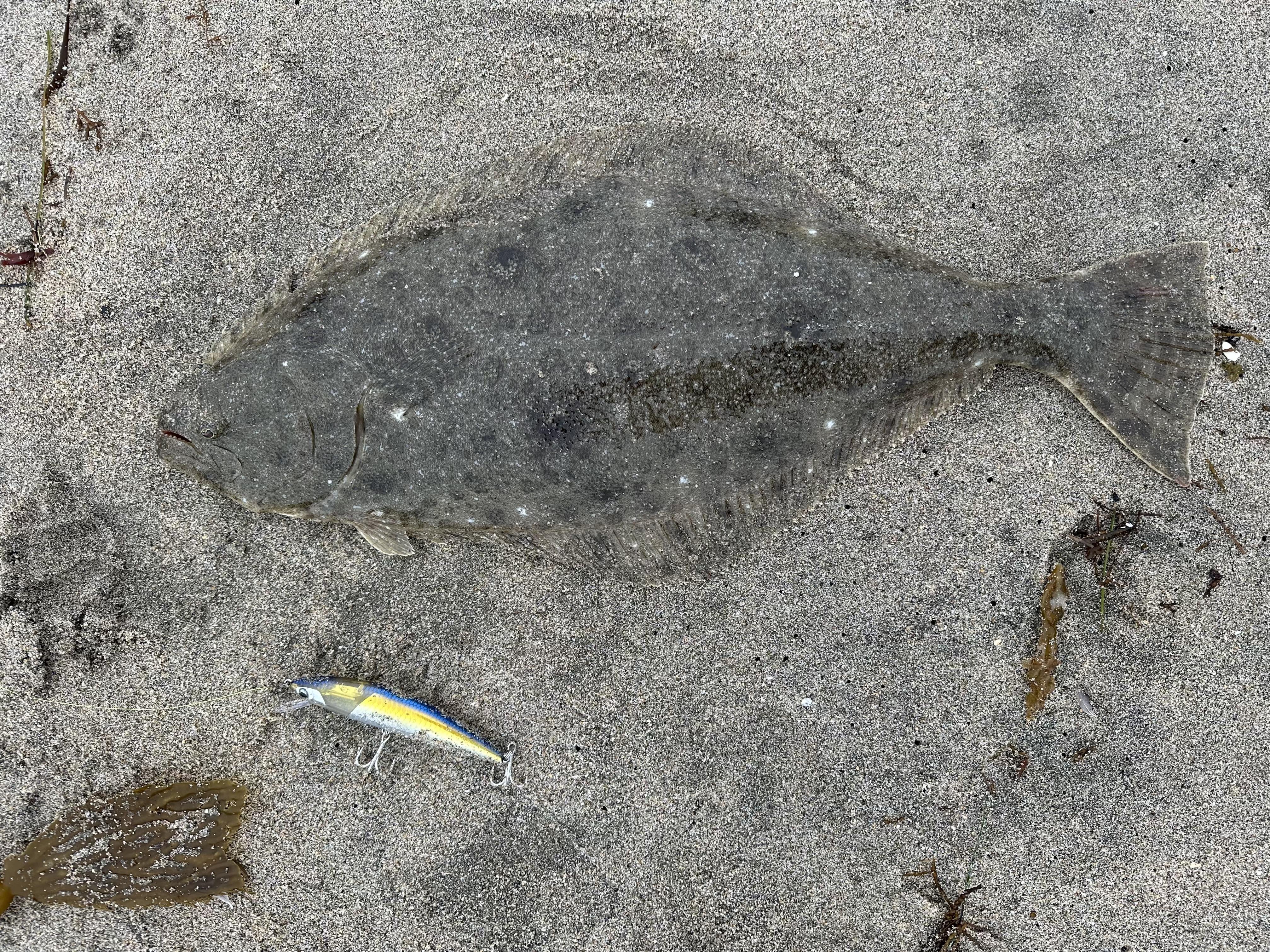 After two months of chasing halibut from the surf, I finally landed my first legal catch of 2025 — a solid 23-incher. Caught it at Cabrillo Beach. Posted by Grouchy_Slide_6197