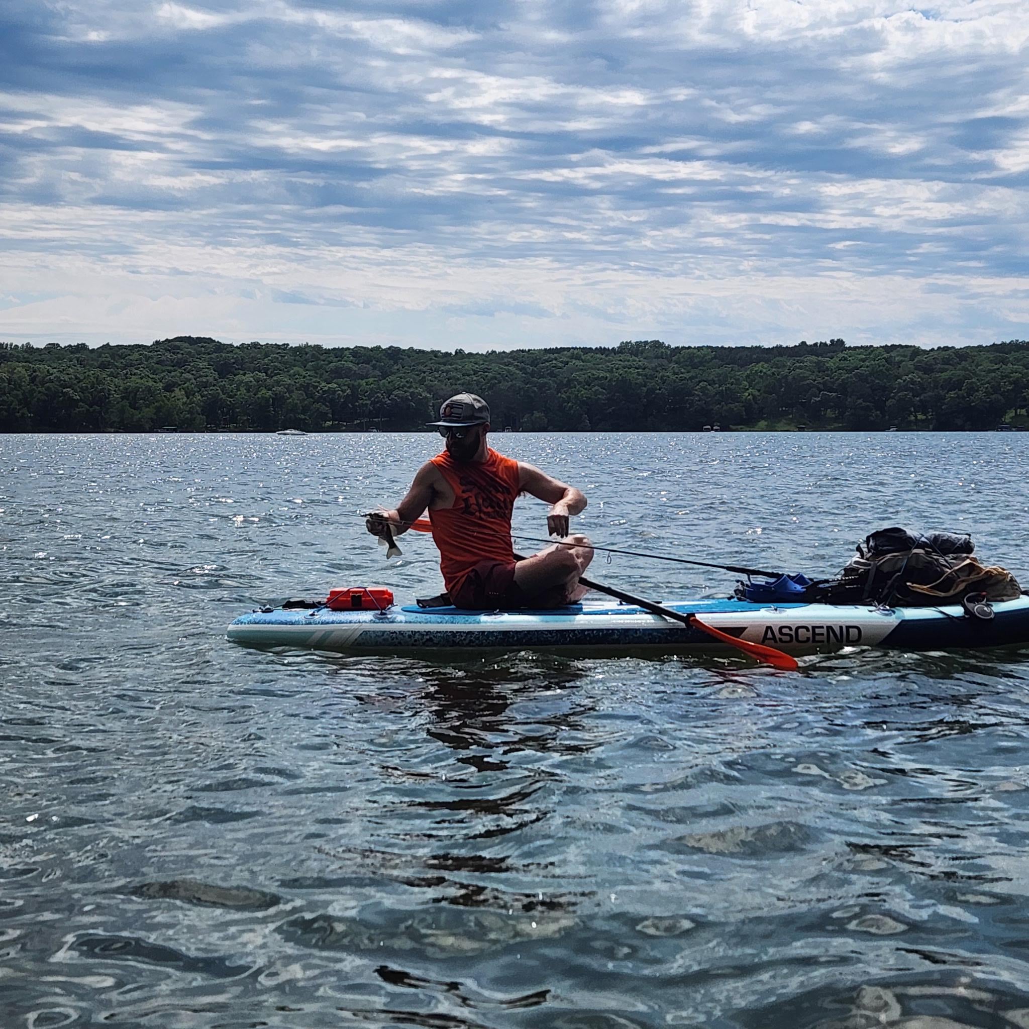 Still dialing it in, but happy to get out on the water instead of shore fishing. Currently using the rocks in a bag with a retractable dog leash for an anchor system. Going to add a makeshift trolley system with paracord around the d rings that are already mounted to the board. Went with the inflatable paddleboard because I live in an apartment with limited space.