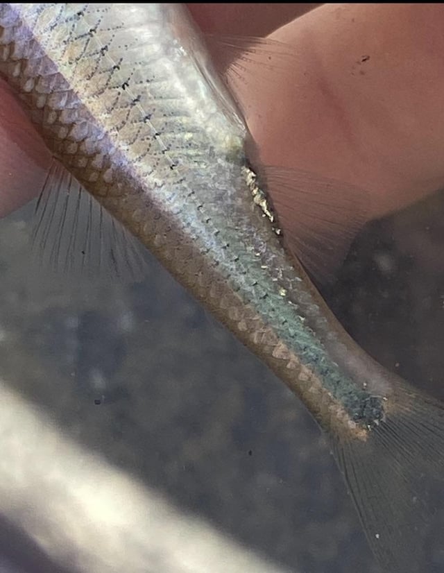 Caught these out of Lake Huron in southern Ontario and first assumed they were just bigger sand or mimic shiners but someone told me about the cross hatch patterned scales and black pigment on the dorsal fin, so are these Spotfin shiners?