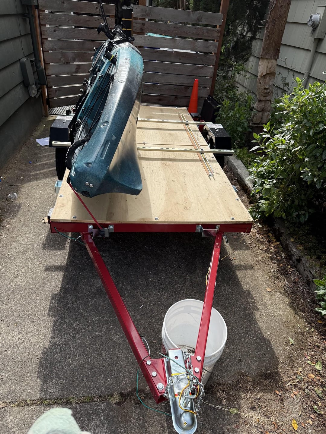 I got sick of throwing a 70lb kayak on the roof of my SUV (and having to get on the roof to reach the straps. Thanks to some previous threads on this topic, I went and got the Harbor Freight trailer and built it over the weekend. Also threw on a makeshift rack with some super strut (again, thanks to this forum). I've still got some minor tweaks to make, but it worked GREAT yesterday.