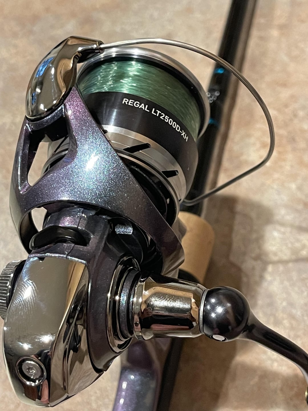 Already have a St Croix Avid Medium Heavy 7ft, St Croix Premier UL 6’6” both with Shimano Miravel reels. Wanted something else in the middle of the power range. Decided to change up the reel with the Diawa Regal 2500. My wife wanted a “pretty” reel when she comes with me. Testing it out this weekend up in the Moosehead Lake area in Maine.