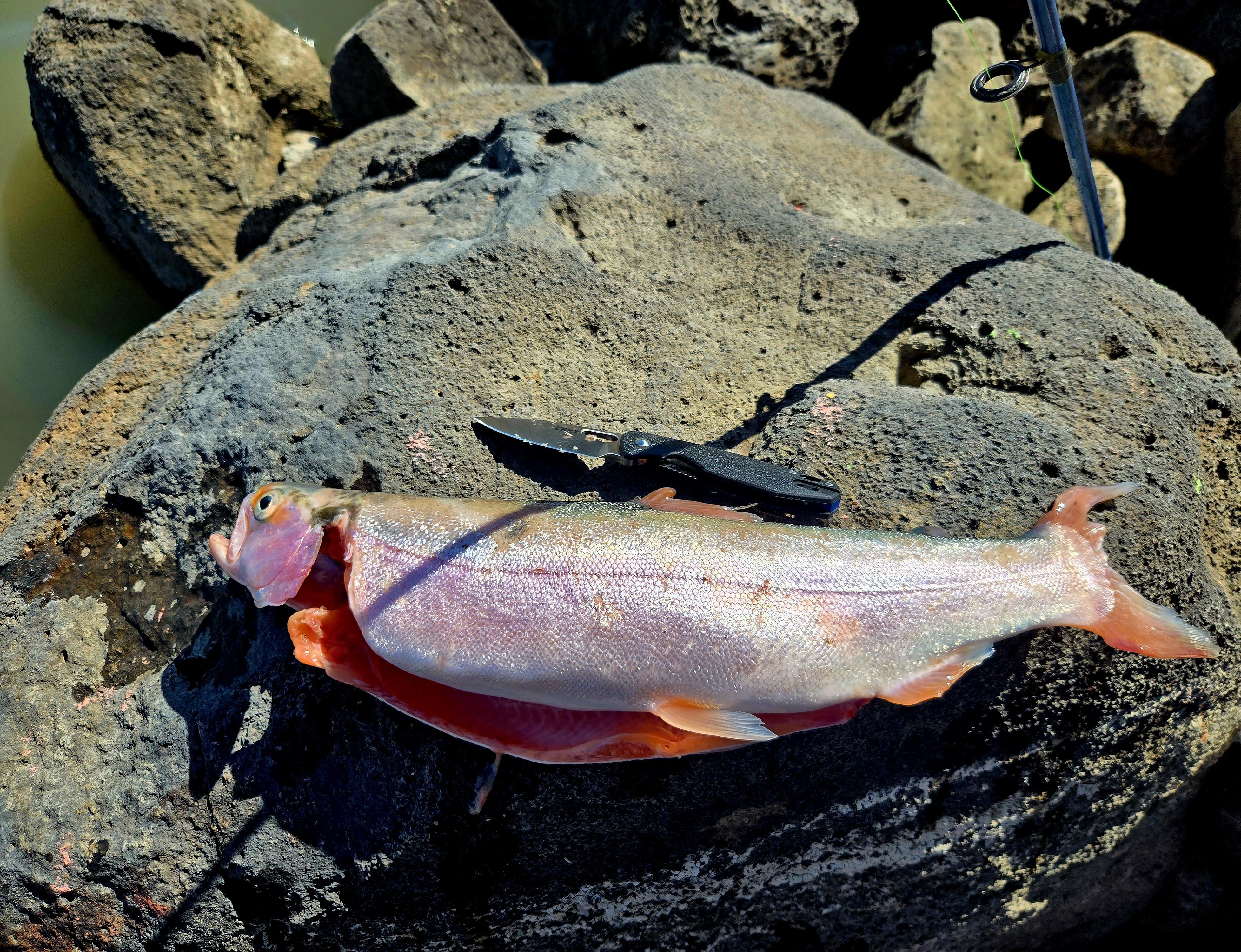 I usually fish rivers, but caught this guy and a few others at a well stocked lake. Some kind of blue in color, this guy is red. I assumed diet, but any other explanation for color variations?