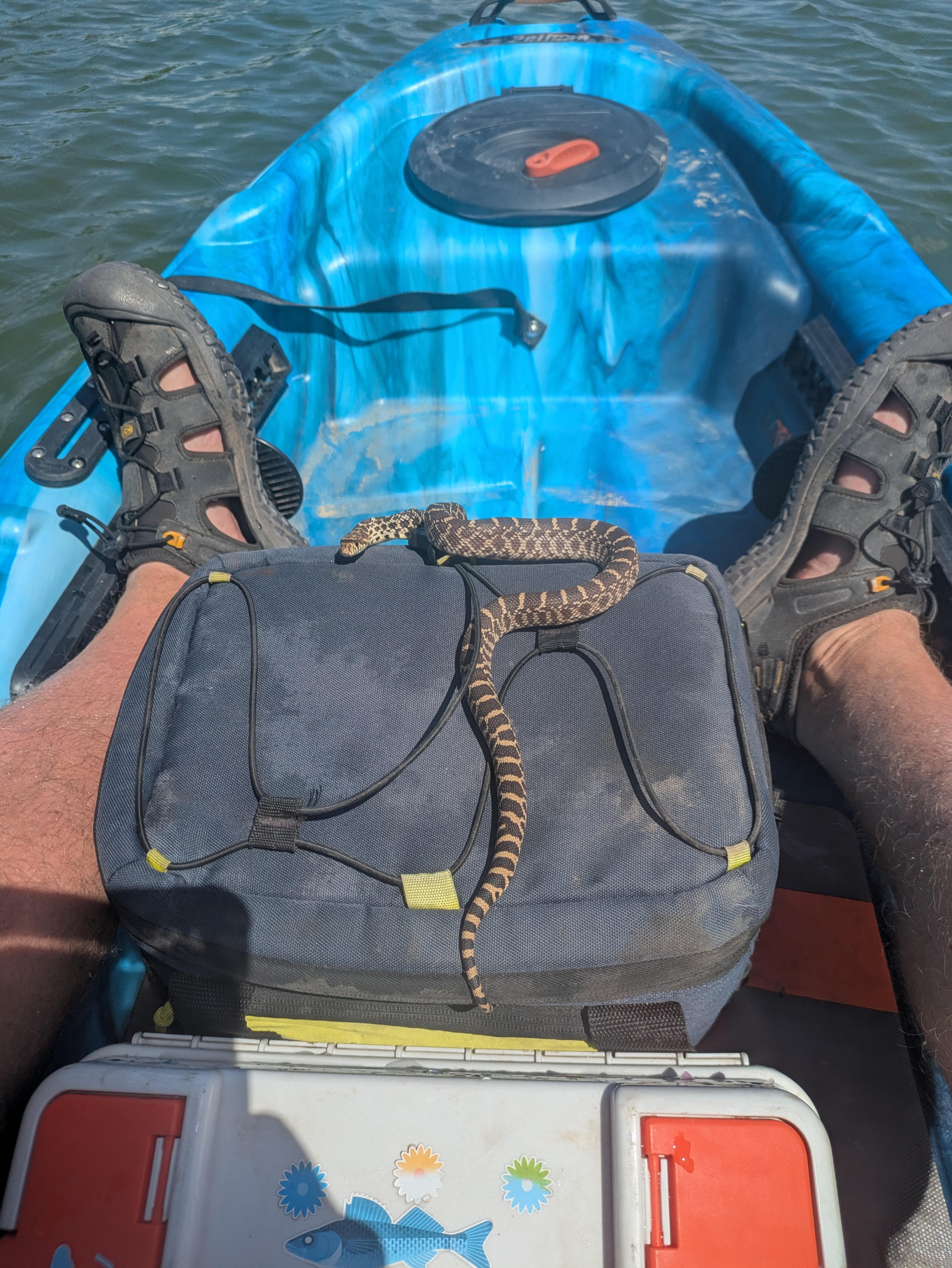 Little baby bull snake got a free ride on me. I hope I see it grown up. Posted by Ok-Communication1149