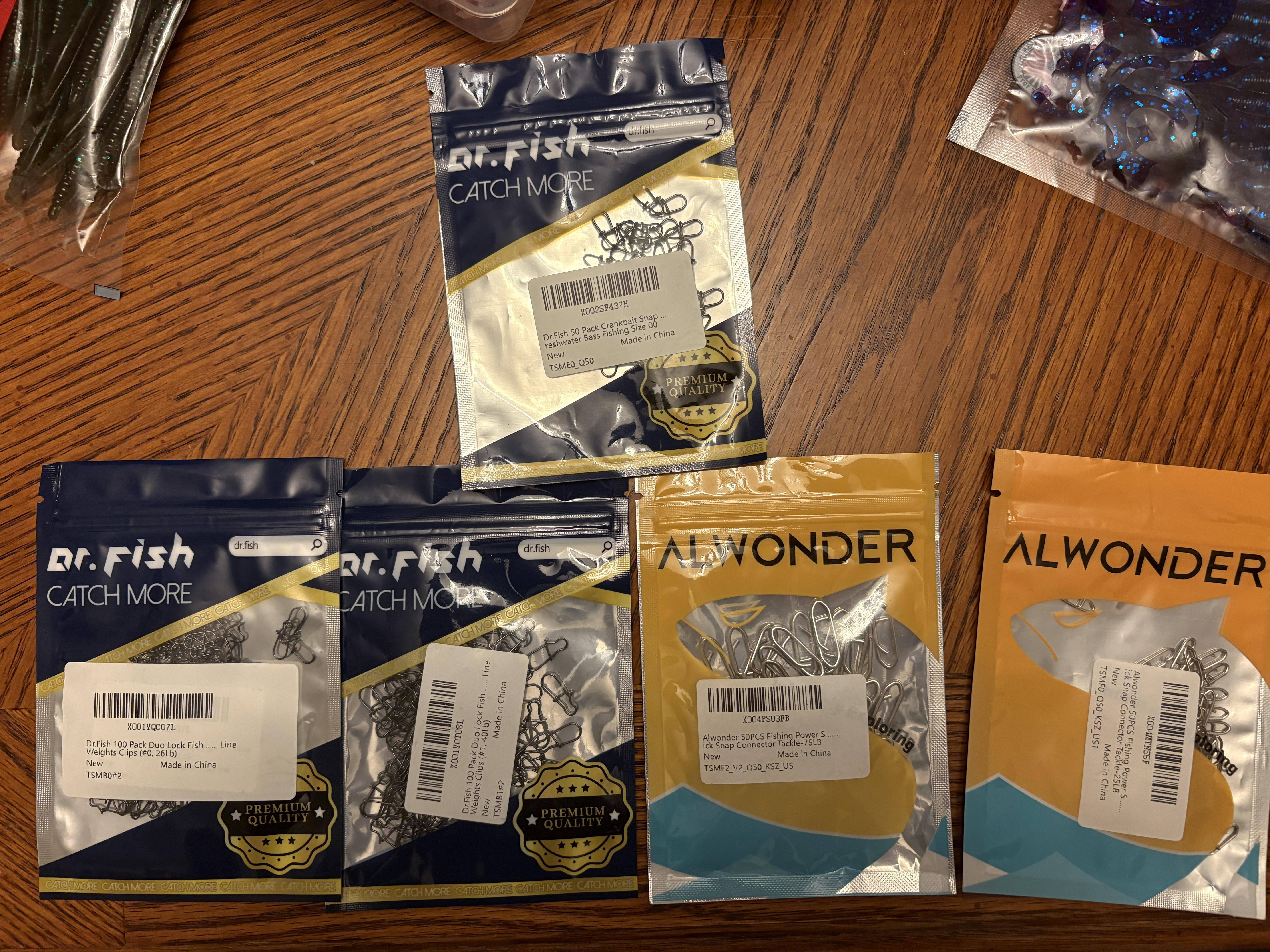 Getting sick of tying loads of knots when I'm experimenting with lures/colors so I decided to get some clips. The top are crankbait clips, which I'll probably keep and dedicate just to crankbaits. But I'm conflicted over the bottom clips. I plan on keeping a smaller and larger clip, one set for panfish/trout and the other for larger fish like bass and snakehead. The Dr. Fish clips are smaller/thinner and have similar weight ratings, but seem like they take more time to swap out than the paperclip style. Does anyone have experience with either type of clip? Is one better for maintaining lure action than the other?