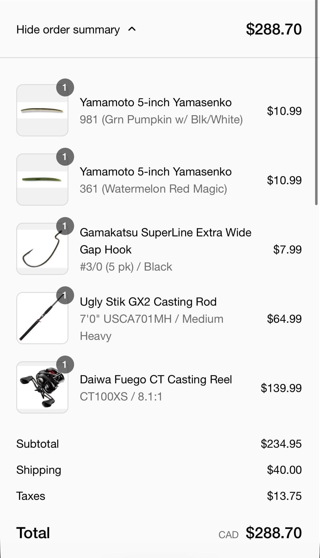 P.S.: All the prices are in Canadian dollars. Convert to USD if needed. I thought this tackle shop had some pretty solid deals.