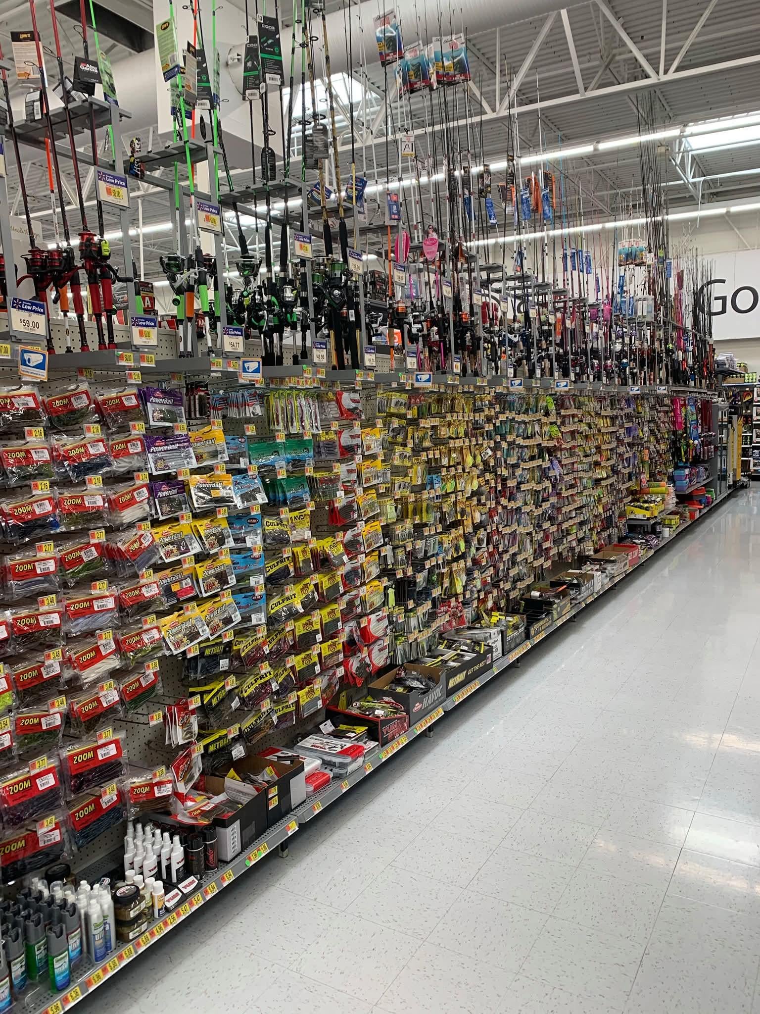 Fake AI pic. The Walmart fishing aisle is never that organized.