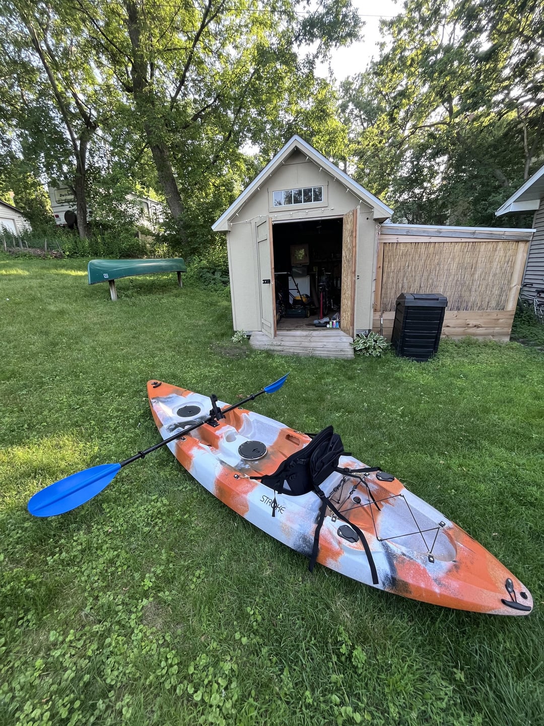 I have around 8 hours of time on my new Stroke Helen kayak. It is very stable and the rod holder is legit – right in front of me – while there are two rod holders on either side directly behind me. It is very lightweight, which was a concern for me. It is under 10 feet and doesn’t track real well, but it could be my inexperience. I fish on the Chain of Lakes in Minneapolis. It was windy today, but I caught a hawg. The biggest largemouth I’ve caught on Cedar Lake. It was awesome!