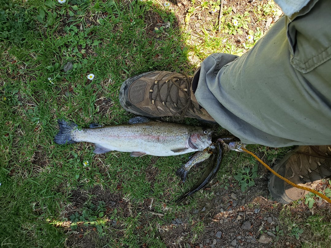 They allegedly only stock legals in this lake so I brought my light setup. First cast my reel starts zipping so I thought the drag was just too loose on my new reel. It wasn't. I kinda got a handle on it then it decided to actually run and zipped across the lake. It snapped my line at shore then flopped into some mud and lodged itself in place. Gave me enough time to almost lose a boot and grab it. The small ones are 9 inches.