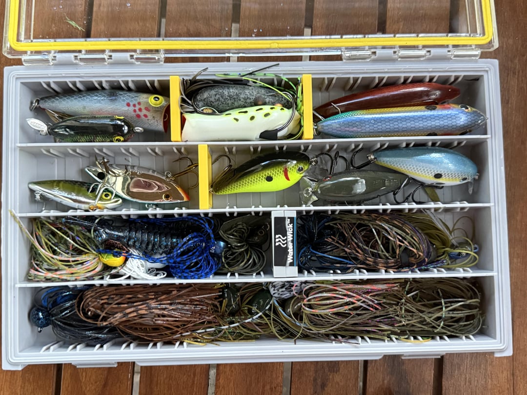 I haven't added deeper-diving crankbaits yet because most of my fishing is from the bank, but I might add one or two mid-depth cranks to cover more water and replace some unused baits. I also think I have too many jig types for the hardbait box, so maybe I'll throw them into a small 3500-size box separately and lay it on top of everything in the bag.