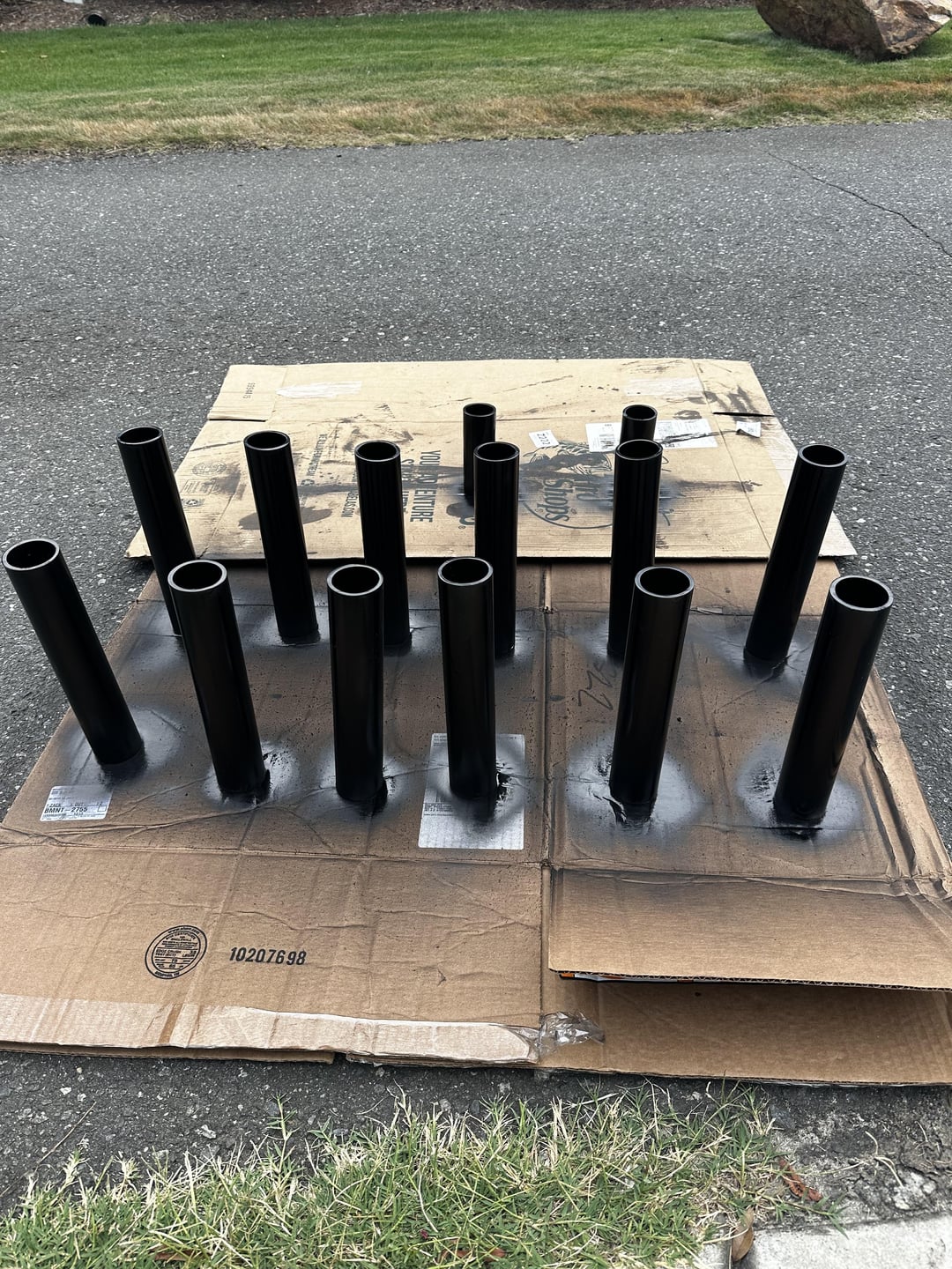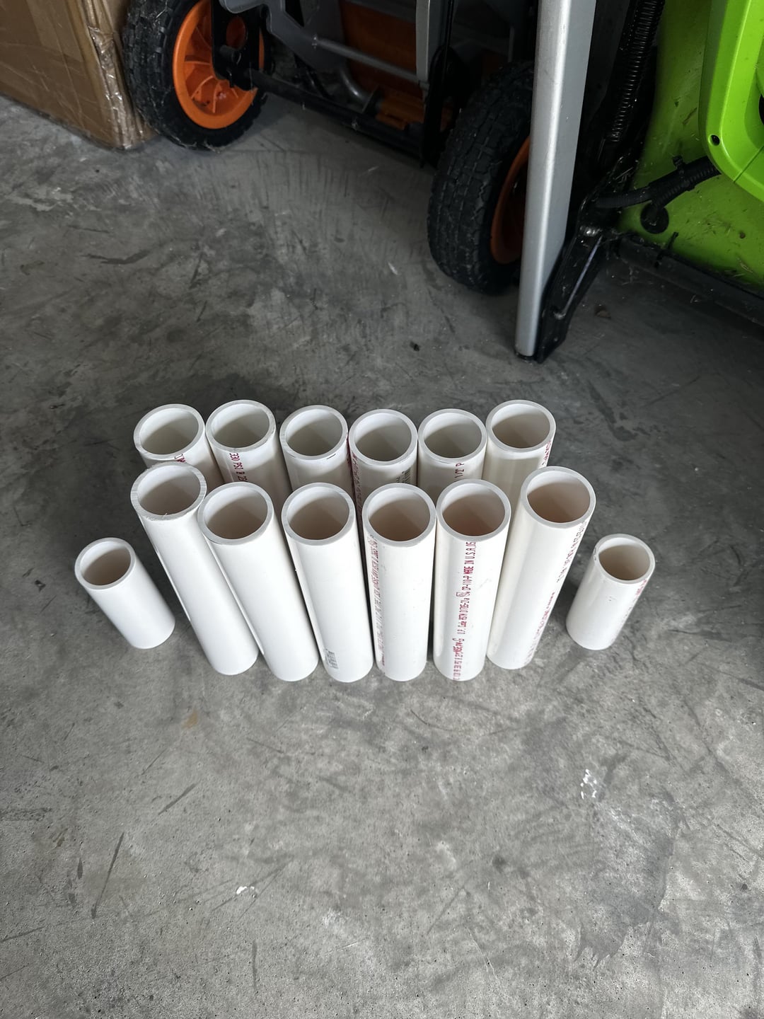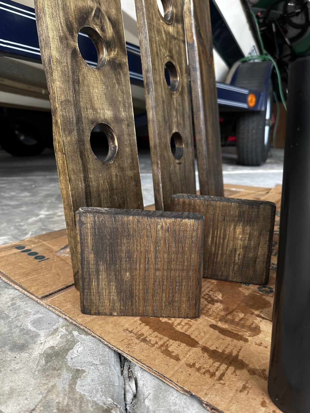 Had most the materials laying around the garage. A couple 1”x6”x10’ boards, some stain, poly, and spray paint for the PVC. Only had to buy the 10’ sheet of PVC. Total cost was $9 and a lot of time and sweat. Was pretty happy with how it turned out!
