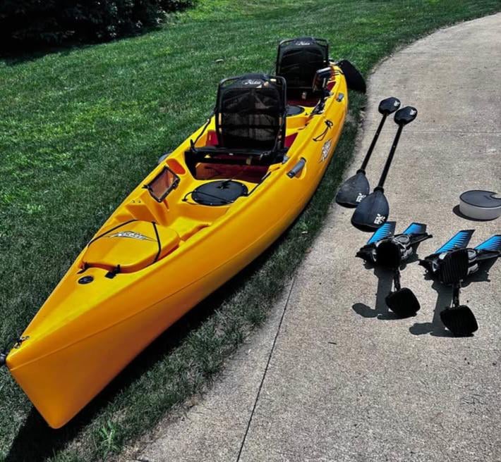Comes with fishfinder and Hobie wheel cart in addition to what is seen here.