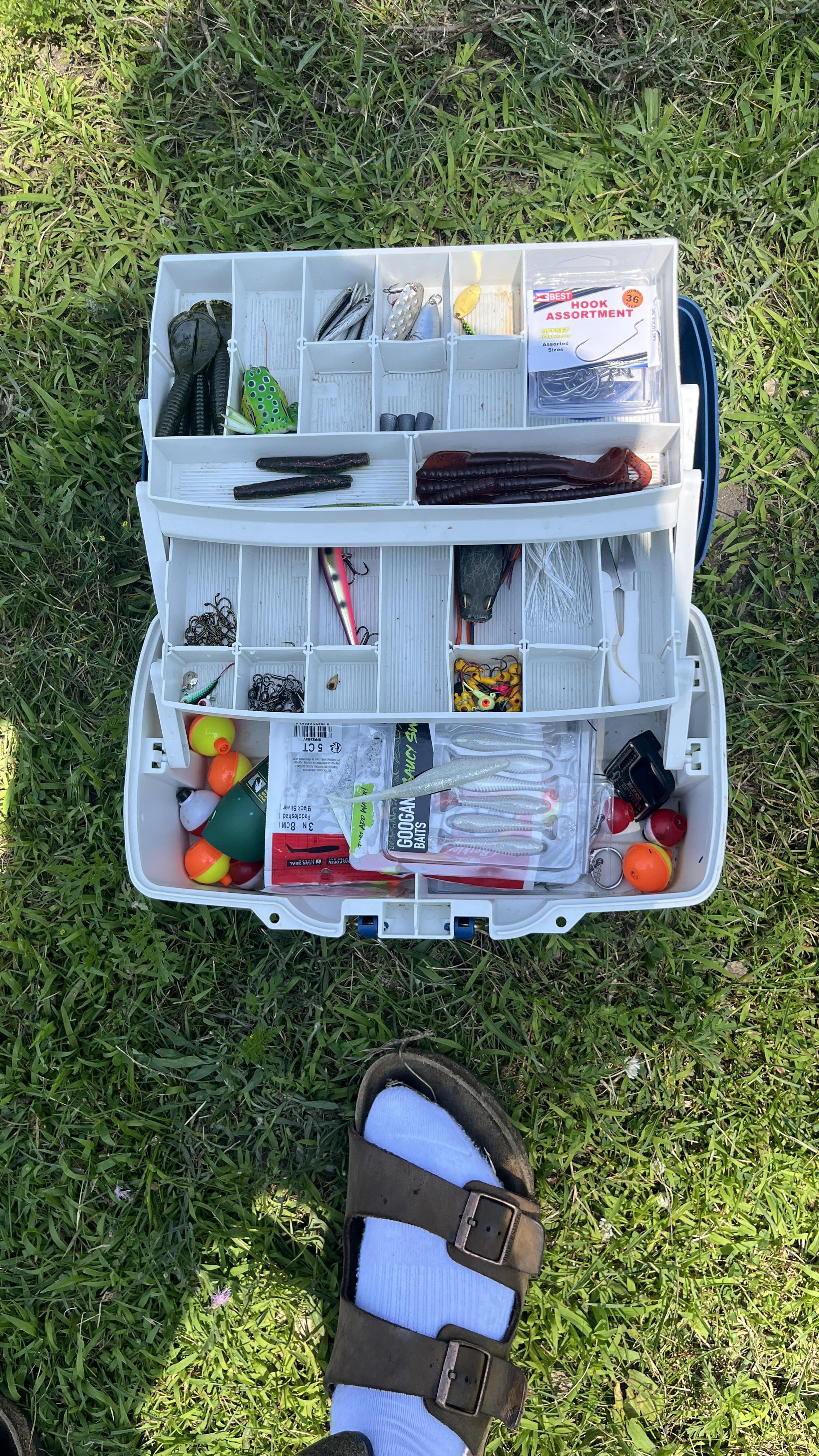 Get a plano shoulder bag or a fishing backpack. They come with plano boxes. Best way to organize fishing tackle is with plano boxes. You’re just starting out from what I see, you don’t have that much to really require organizing. But trust me and any other fisherman that is decently serious about this hobby, you will outgrow that old-school tackle box very, very soon.