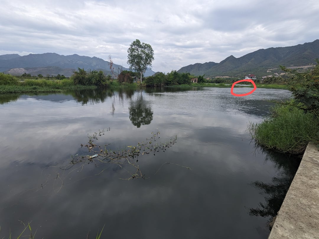 Spot 1: about 50 cm to 1 m deep, near a drainage pipe (red circle) with strong water flow. I often see carp swimming around the pipe. Rocky bottom.