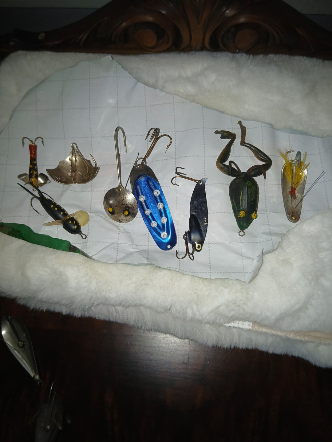 Mom recently discovered a box of vintage fishing gear and asked me if I knew anything about them. Most of my research ended up at dead ends. I was hoping someone more knowledgeable than I am might be able to identify some of these and maybe give me an idea of how much these may be worth. There's quite a few more and some have names on them, but I can't find any useful information. Any help is greatly appreciated.