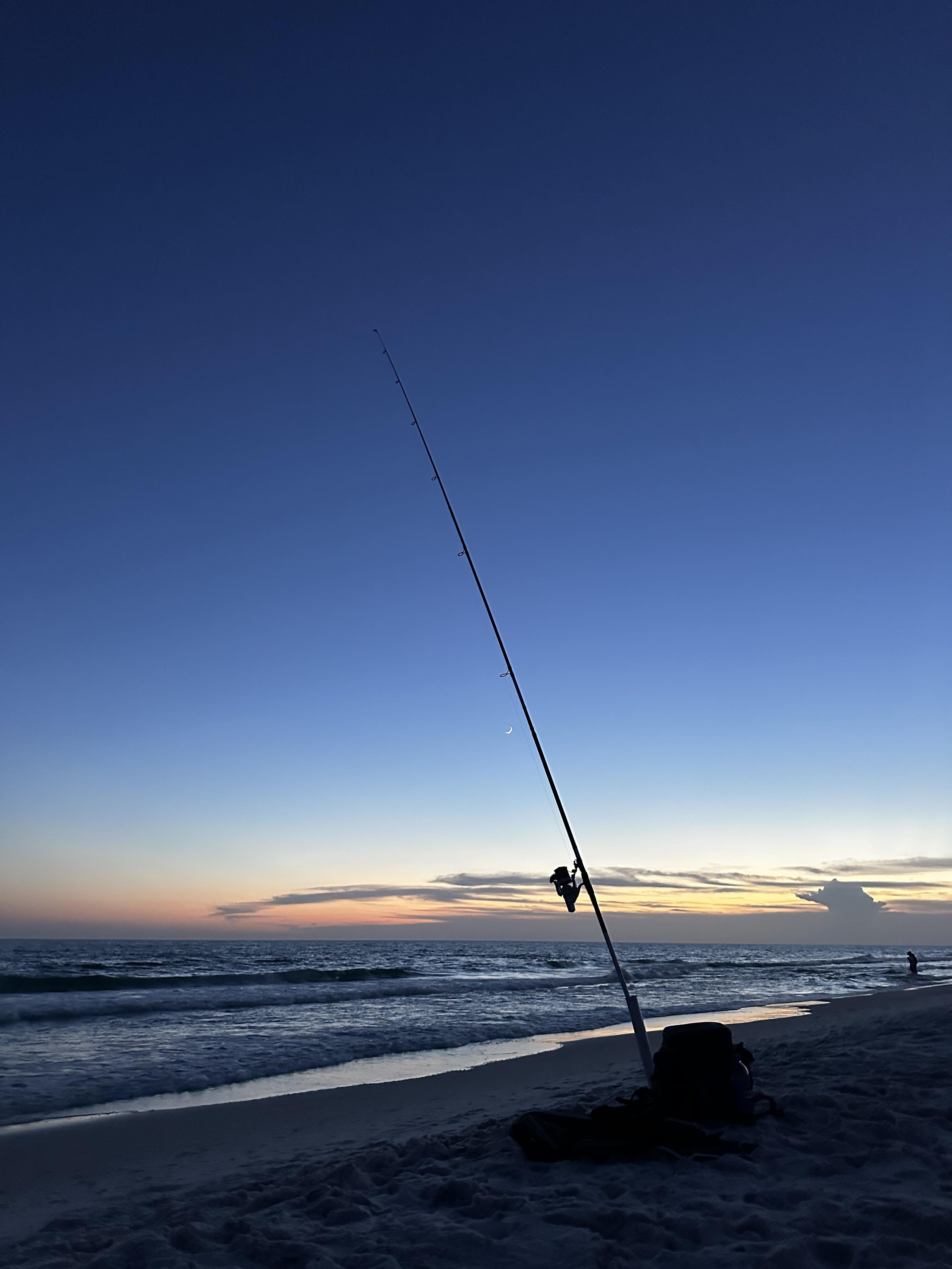I finally switched from just throwing a sinker to throwing a pulley-pennel rig with this new Daiwa SeaHunter 14’ surf rod paired with the Daiwa CrosscastSurf 45. No fish yet. It’s going to take some practice to really get out there past 200m but I can throw my rig with 6oz of lead and a squid out past 150m with ease. 20lb Yozuri 5 color rainbow braid to count distance when I retrieve, with a nice long 50lb mono shock leader between the braid and the rig. I use a GT knot to go from braid to mono.