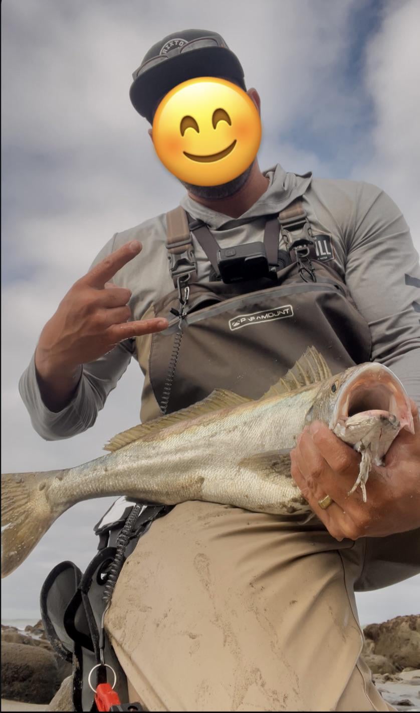 Landed this guy on Sunday July 27th. Made for a hell of a birthday present from the surf! Safely released after a couple photos. Orange County, on the lucky craft MS anchovy