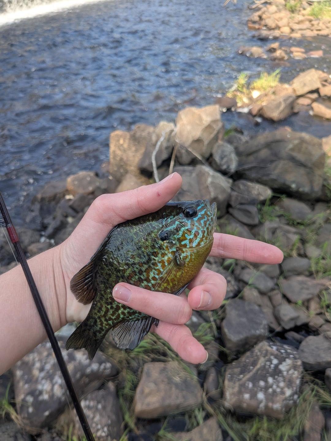 Been mostly using a 1/32 oz and 1/16 oz panther martin but also worms, beetle spins, and some other little things. They're all getting fish just no trout.