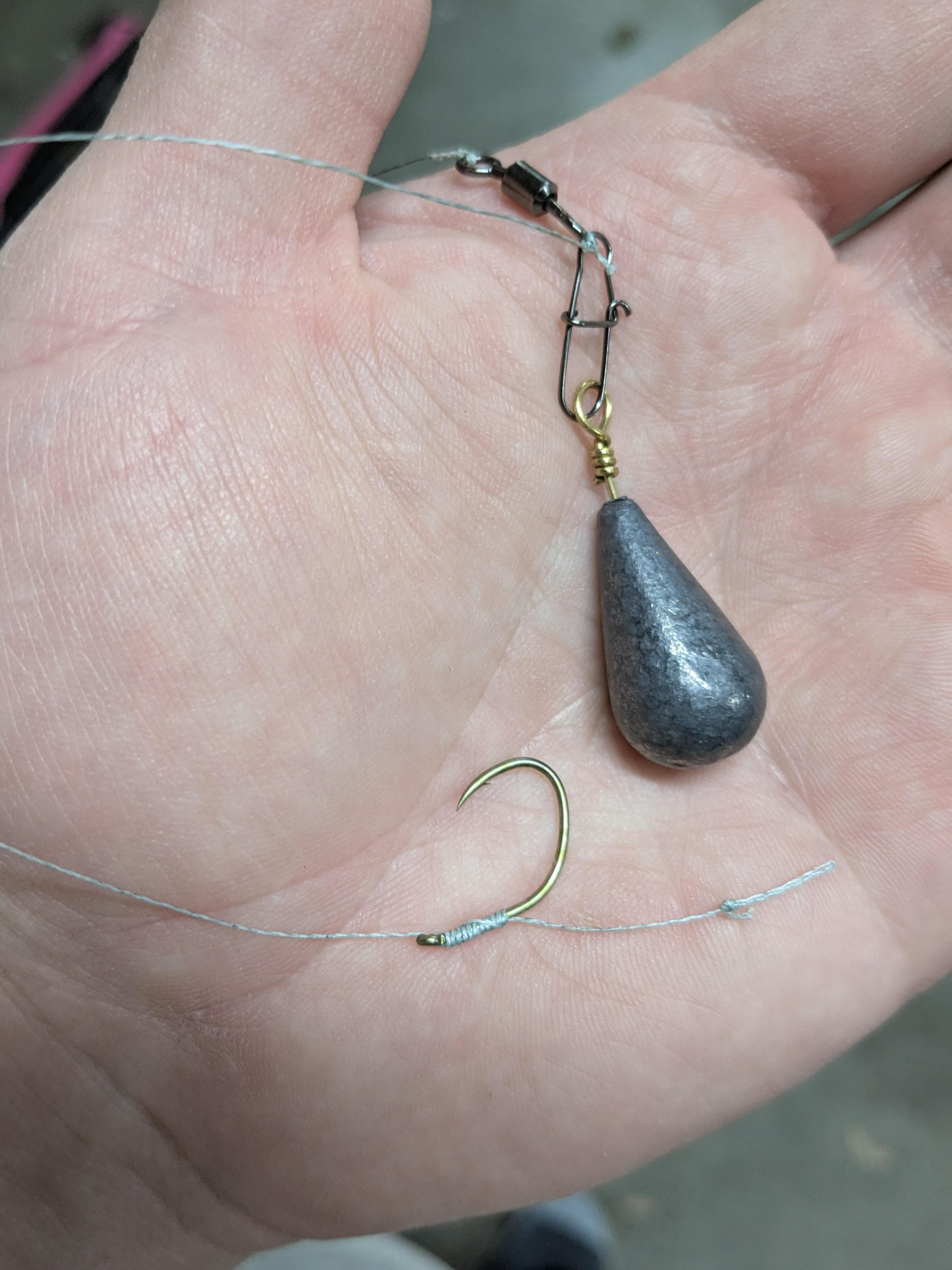 Local pond has a ton of common/grass carp. Kid and I caught a few on a 4 hook with corn and had a blast. Bought some pre tied hair rigs and seems like our catch rate dropped drastically so I tied this one up.