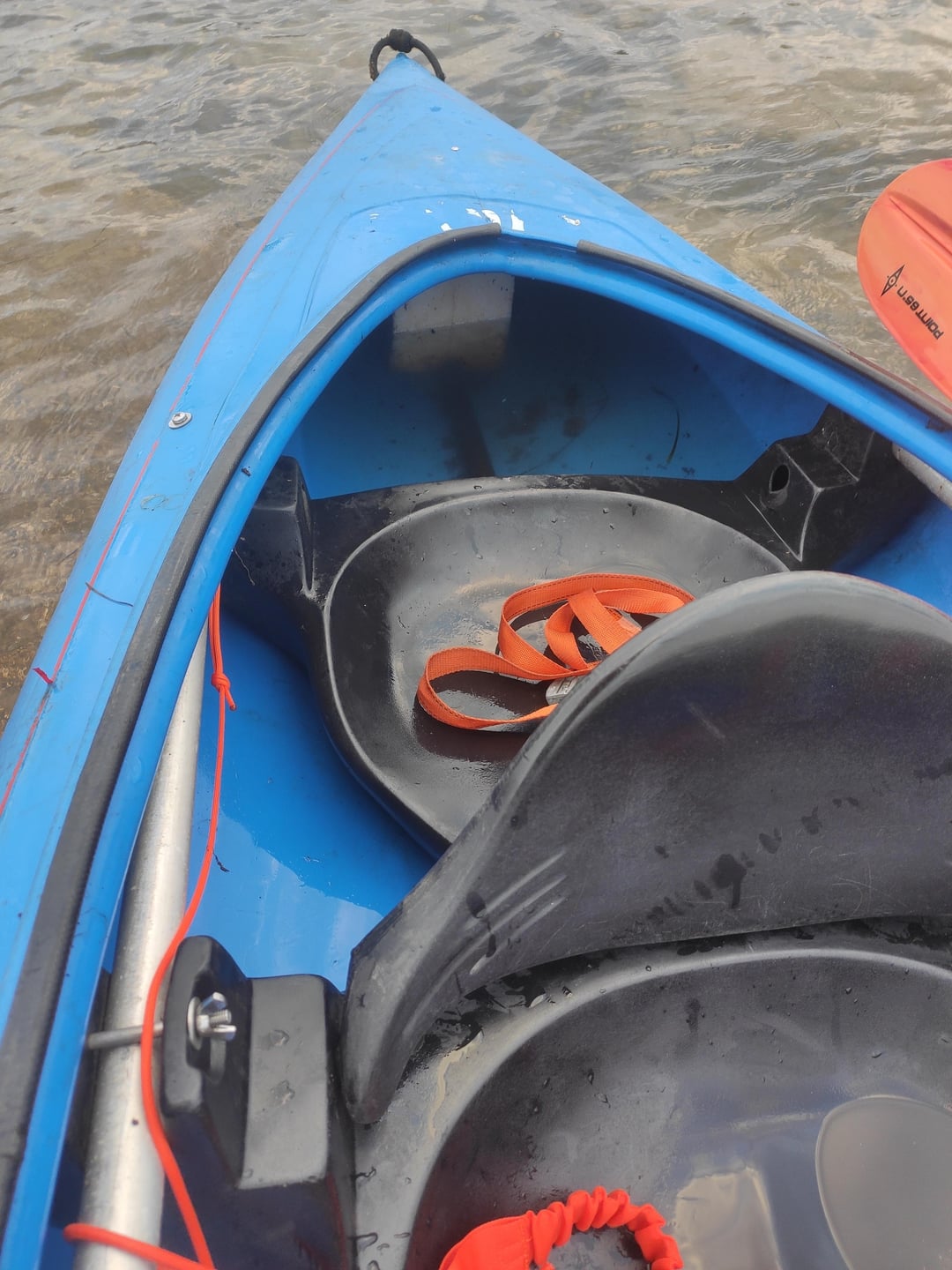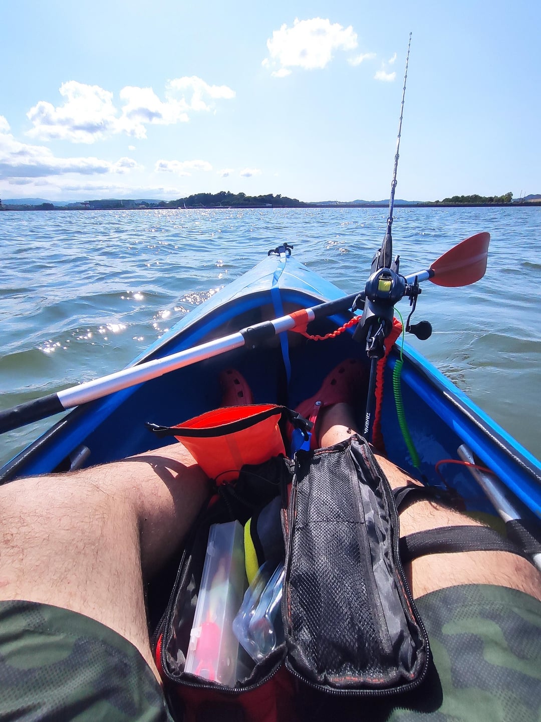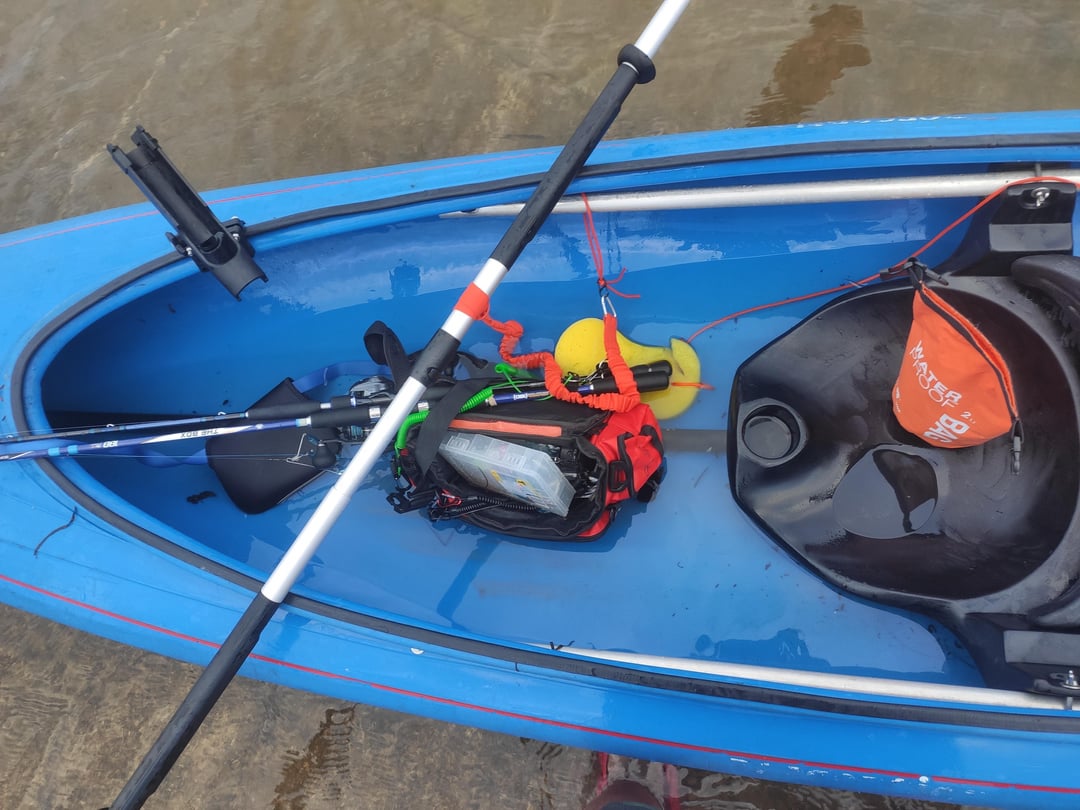 Gear wise, very comfortable, just throw a large bag with all your stuff on the back, once in destination put it between your legs, plenty of space to put more things. You can put the butt of your rods on the deck and rest them on the front of the cockpit, or even store them inside (I have a 2m/6ft rod that fits just fine), tie to the side bar, put on the side of the seat…good options here for homemade solutions that will work and be comfortable.