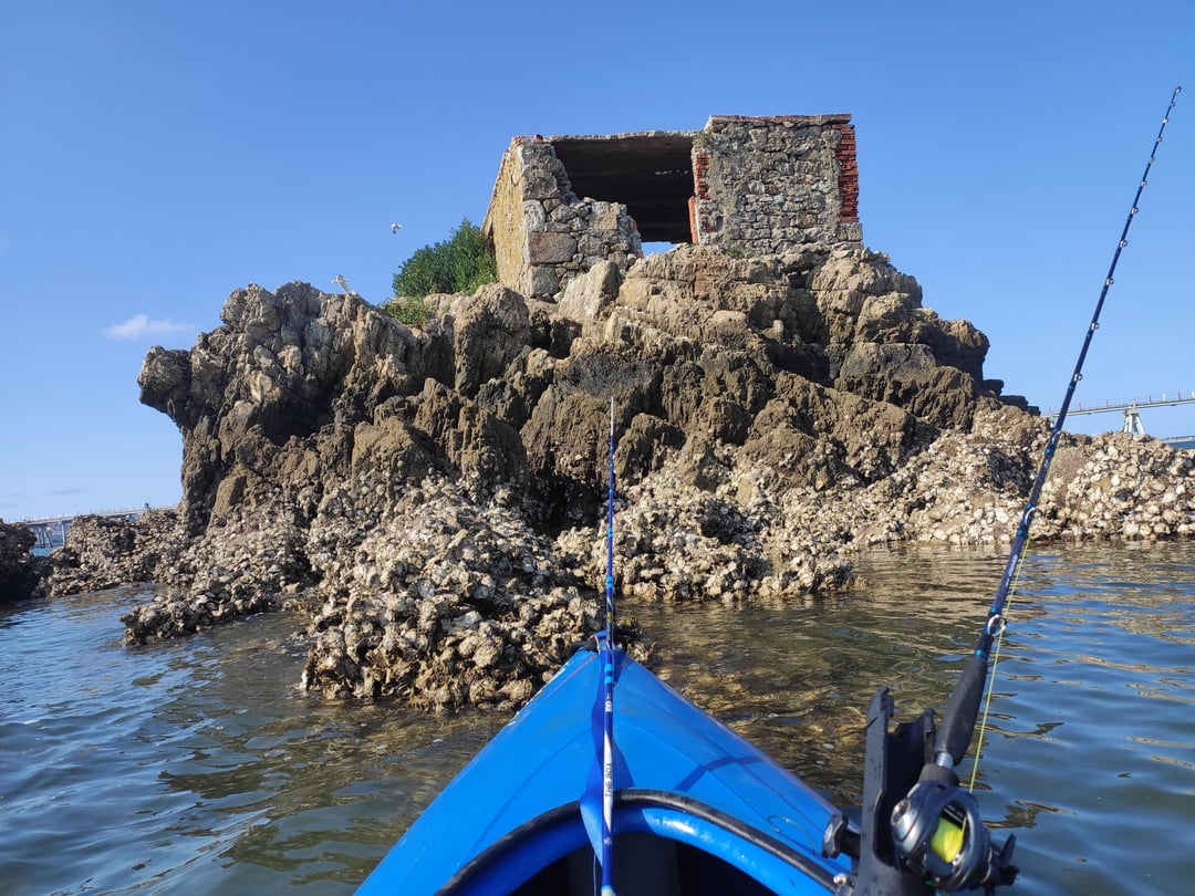 I went against mid winds and tidal currents and I suffered maybe half than I would have in the Predator. Theres a little atol in the middle of the bay, I had never gone that far but it seemed like a good spot to be protected from the wind and currents. What i did was fitting a heavy jig between the rocks and using the jigging rod as an anchor to keep my position haha. It worked. Yes I will get a real anchor soon….