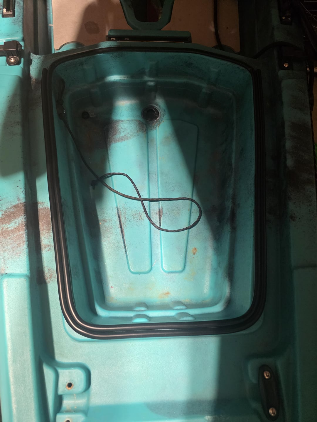 Initial setup. Plan to use the front hatch as the battery compartment. Waiting on paperwork from the manufacturer to register. All suggestions welcome. Got a buddy working on 3D printing this cassette mount https://cults3d.com/en/3d-model/various/kayak-mirage-drive-trolling-motor-cassette-mount-v1