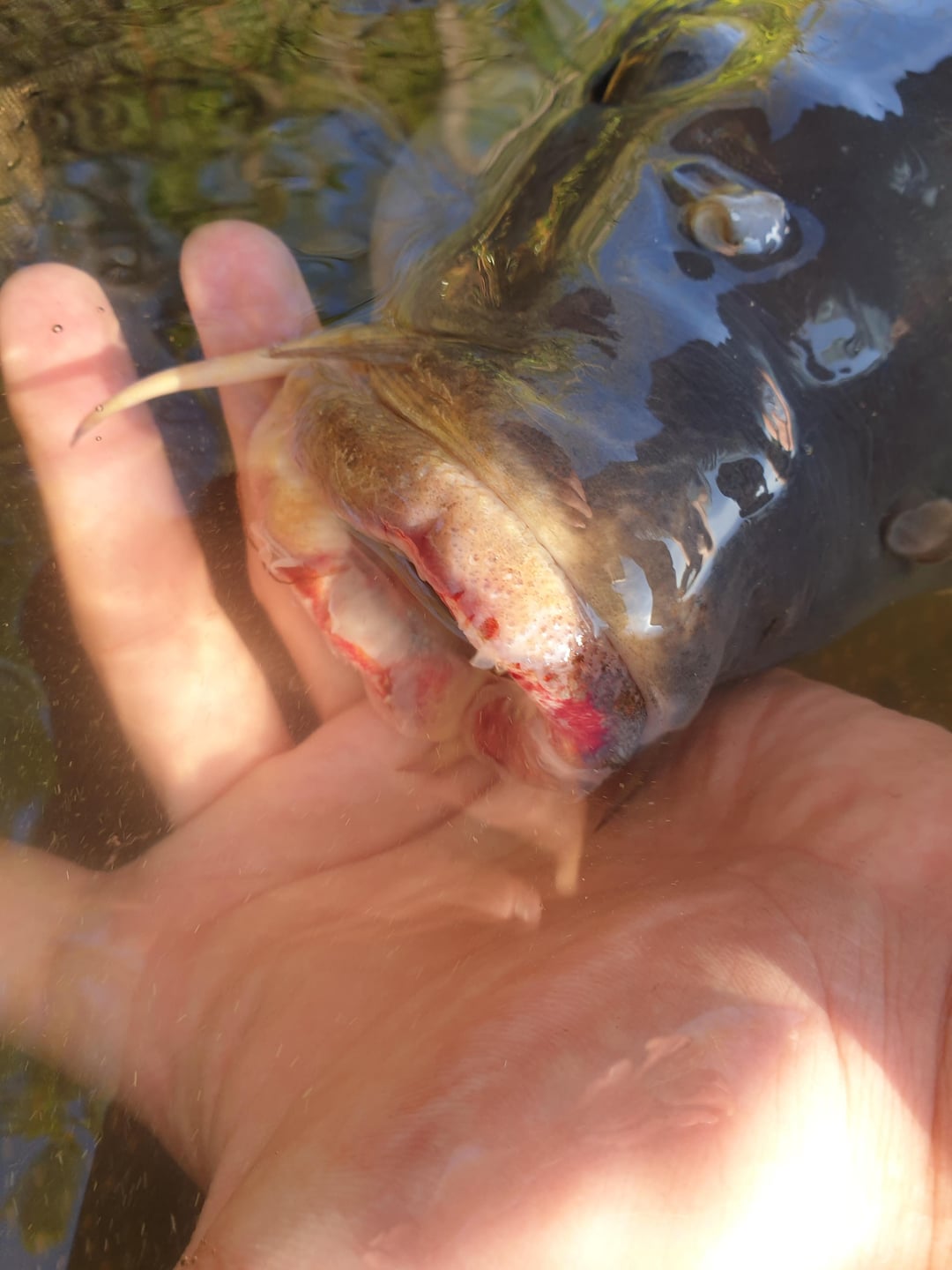 I'm pretty sure the damage was done before I caught it but I'm also fairly new into carp fishing and not 100% confident that I'm not responsible so please help me understand how something like this can happen.