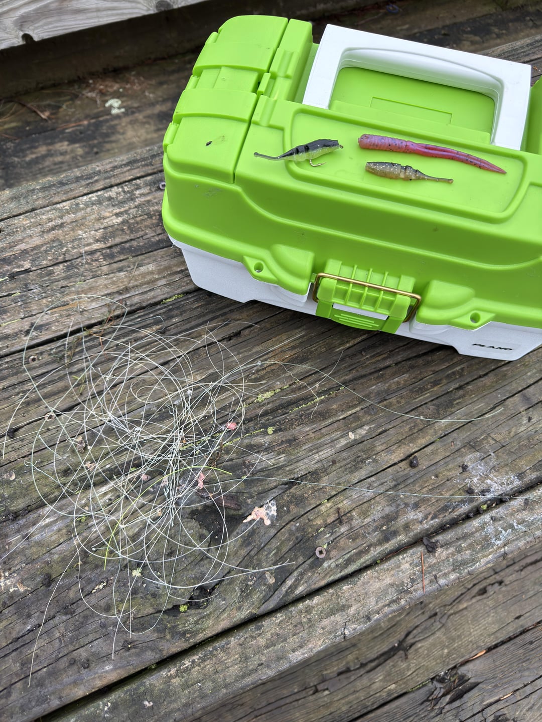 After we ran out of live bait, we decided to clean up the dock of all the cut lines and I scored three (new to me) lures! All in all not a bad day.