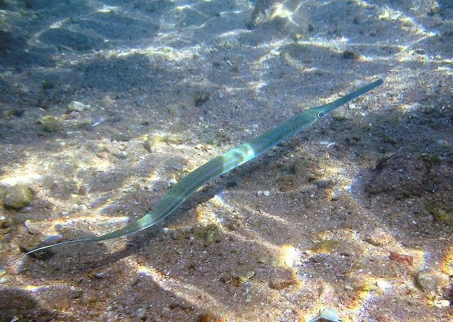 The cornetfish is always swimming around in the area I'm fishing. I see 5-6 of them every morning. They are almost always bigger than 90 cm, some probably over a meter. They sometimes follow my baits but never bite. They also look at my baits when I spot them and cast in their direction, but they don't bite.