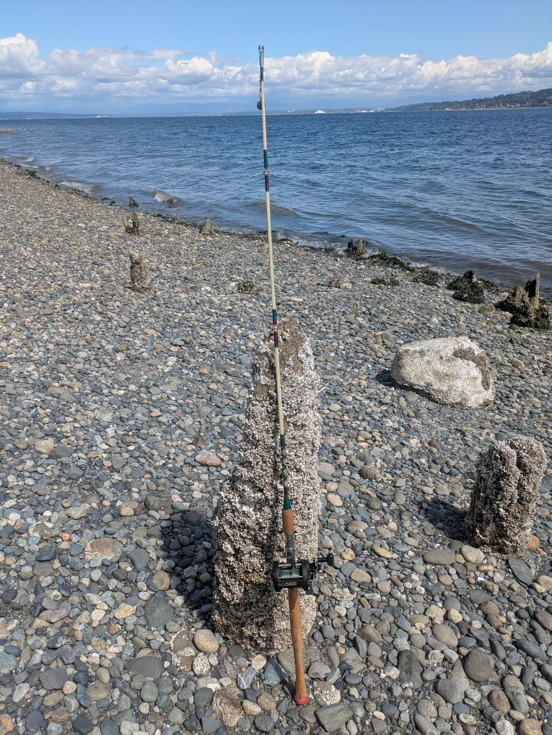 When I was sitting trying to get the birdsnest I made on the third cast off the beach my neighbor walked up and let me know my dad's reel was definitely intended for trolling (I anticipated that but impatience to play won out, and boy was I punished in return I'm still untangling it) and he explained that for shore casting you'd want something with a big hole on the bottom for a guide and some very helpful other tips before lending me a pole to keep practicing on for the afternoon. Suddenly I realized "wow maybe poles aren't that interchangeable, I really assumed flexibility and length was all that really mattered and after that it was up to the reel and the tackle" and now I'm extremely curious what it's intended use is.