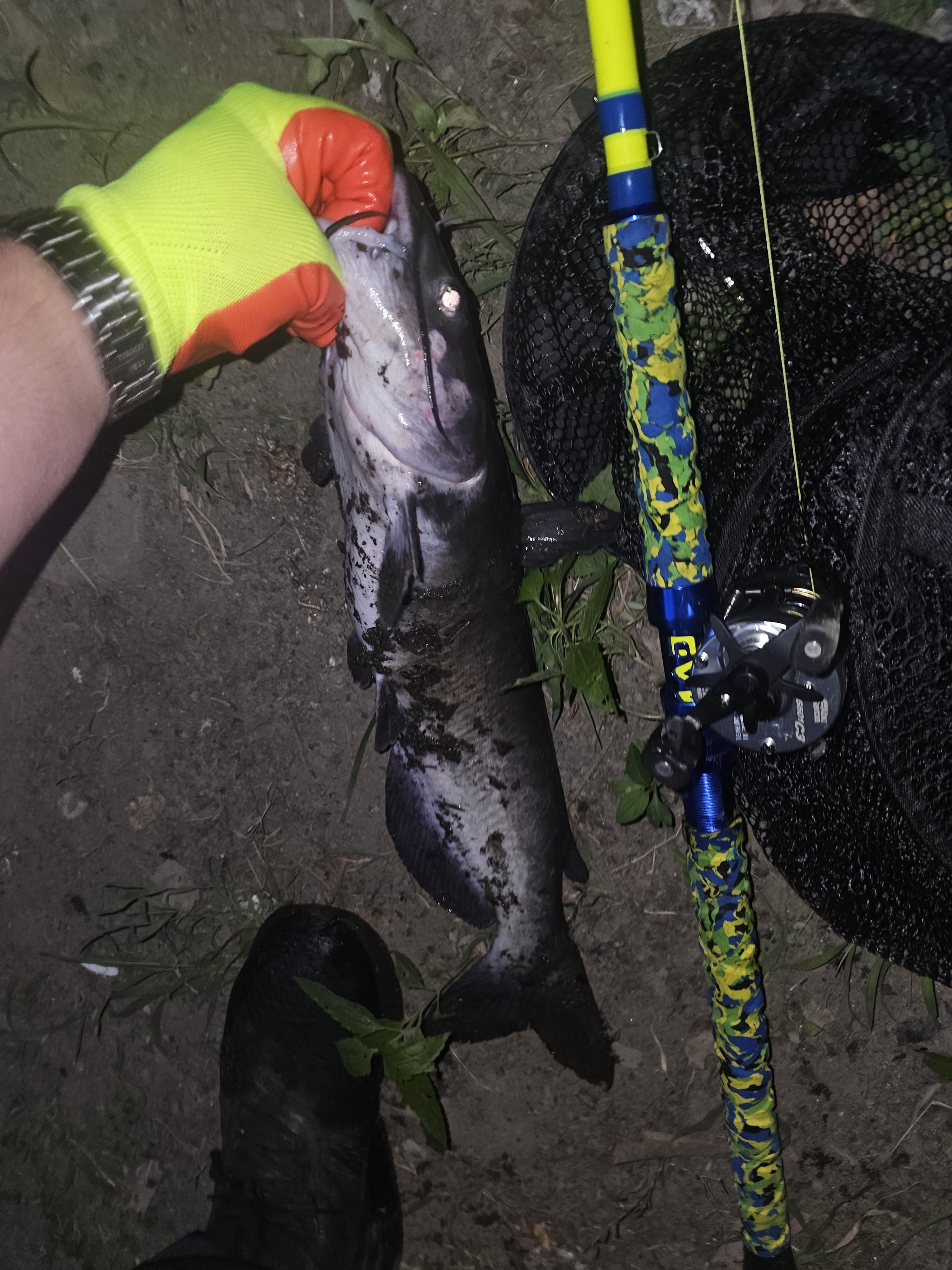 I will say that it takes away from the "fight" simply becuase it's a bit of an overkill. But, you won't have to worry about your rod breaking or reel not being able to pull them in. I took this picture because it's the only picture I have with a fish by my set-up. I've caught larger flatheads with same rod & reel setup.