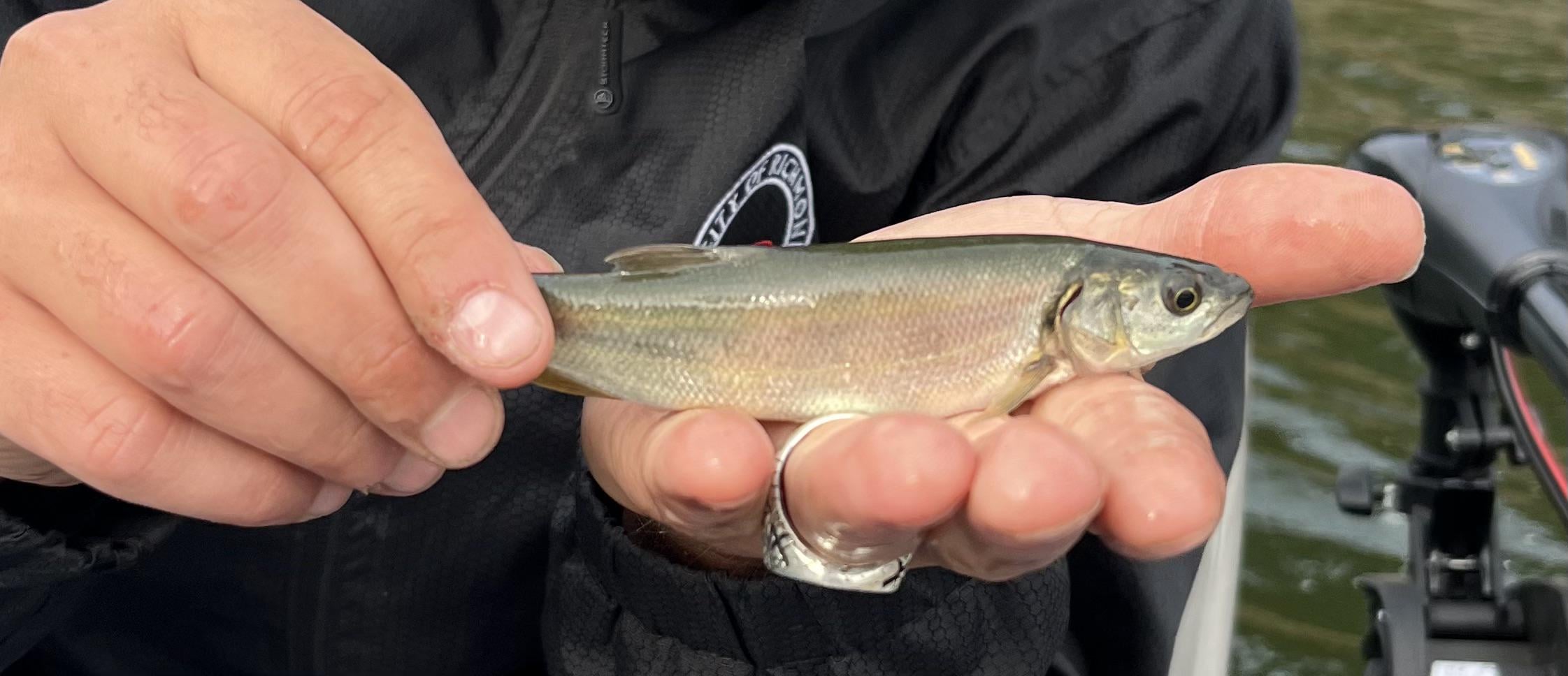 Baby salmon maybe? Mouth looks too large proportionally to be trout. Assuming freshwater. I think salmon due to mouth size and rosy scales