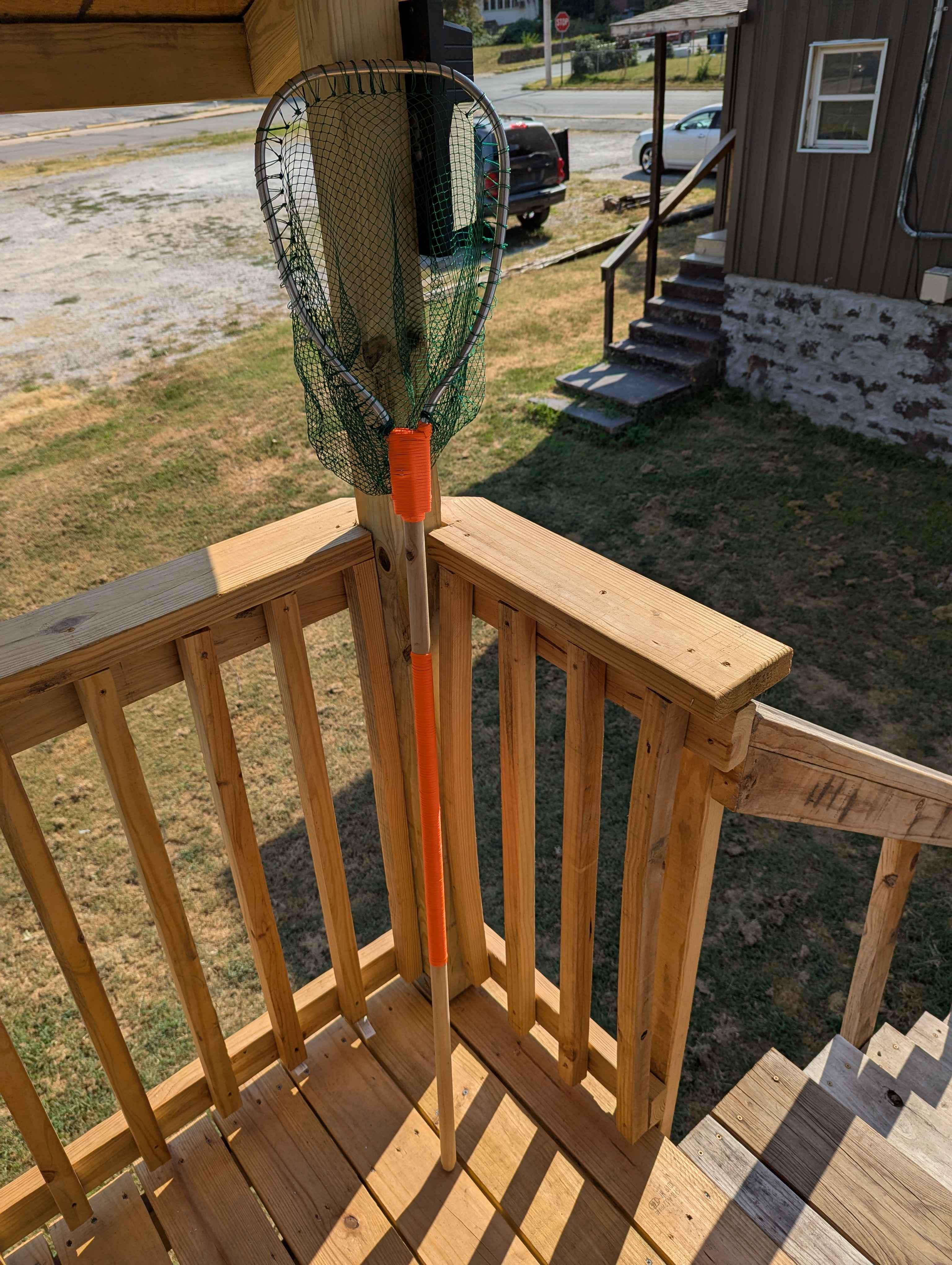 Decided I was going to be a cheap bastard and not spend 25 dollars on a landing net (Totally not because I spent that on lures instead.) threw it together from a old canoe net, scrap and screws from my bits box, hi-vis paracord, and plenty of hand cramps!