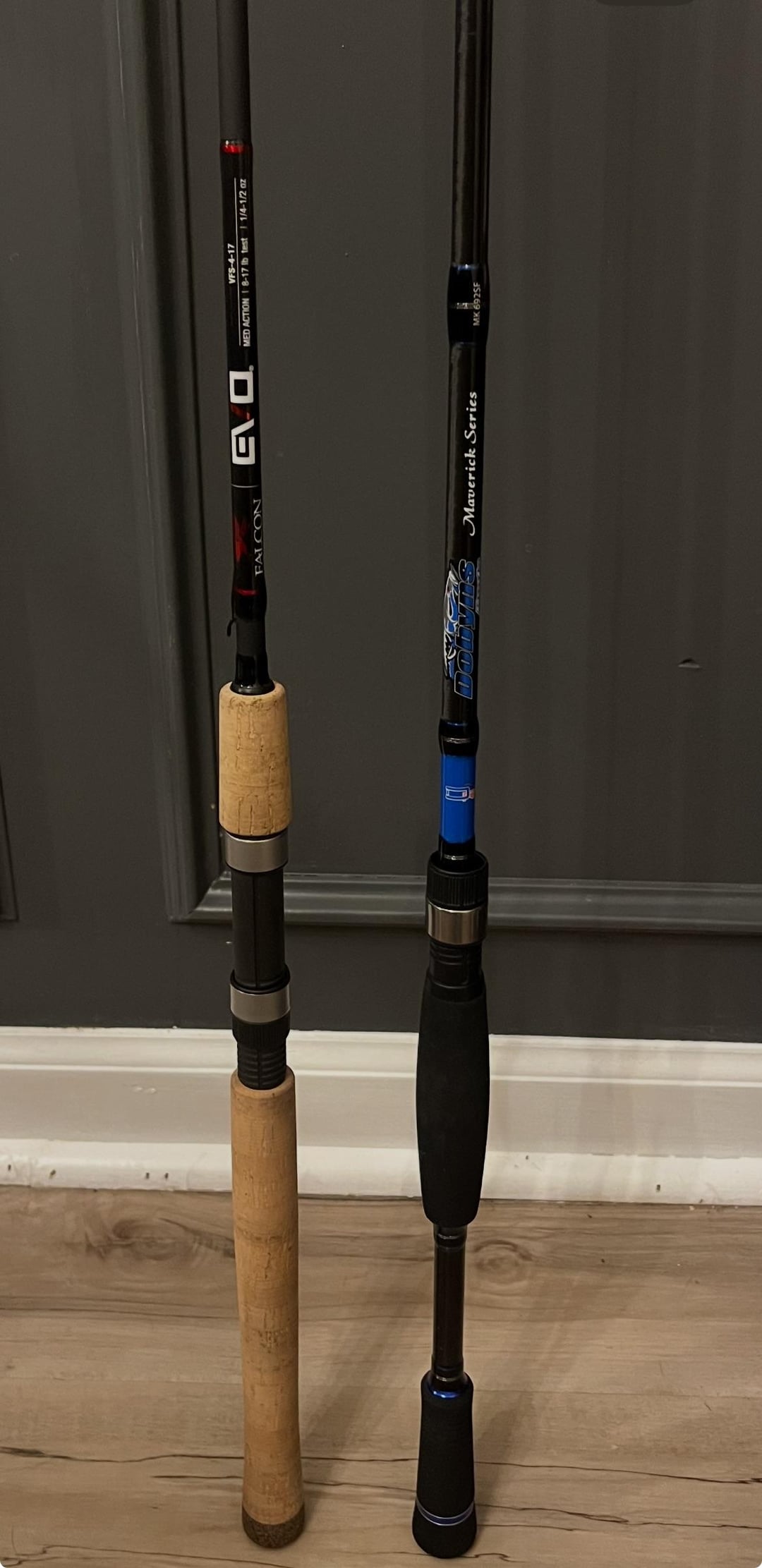 Left is a Falcon Evo 7’ Medium / Moderate action. Right is a Dobyns Maverick 6’ 9” Medium Light / Fast action. Anyone have experience with either of these? I’ve been interested in both and oddly enough found a killer deal on one of each haha